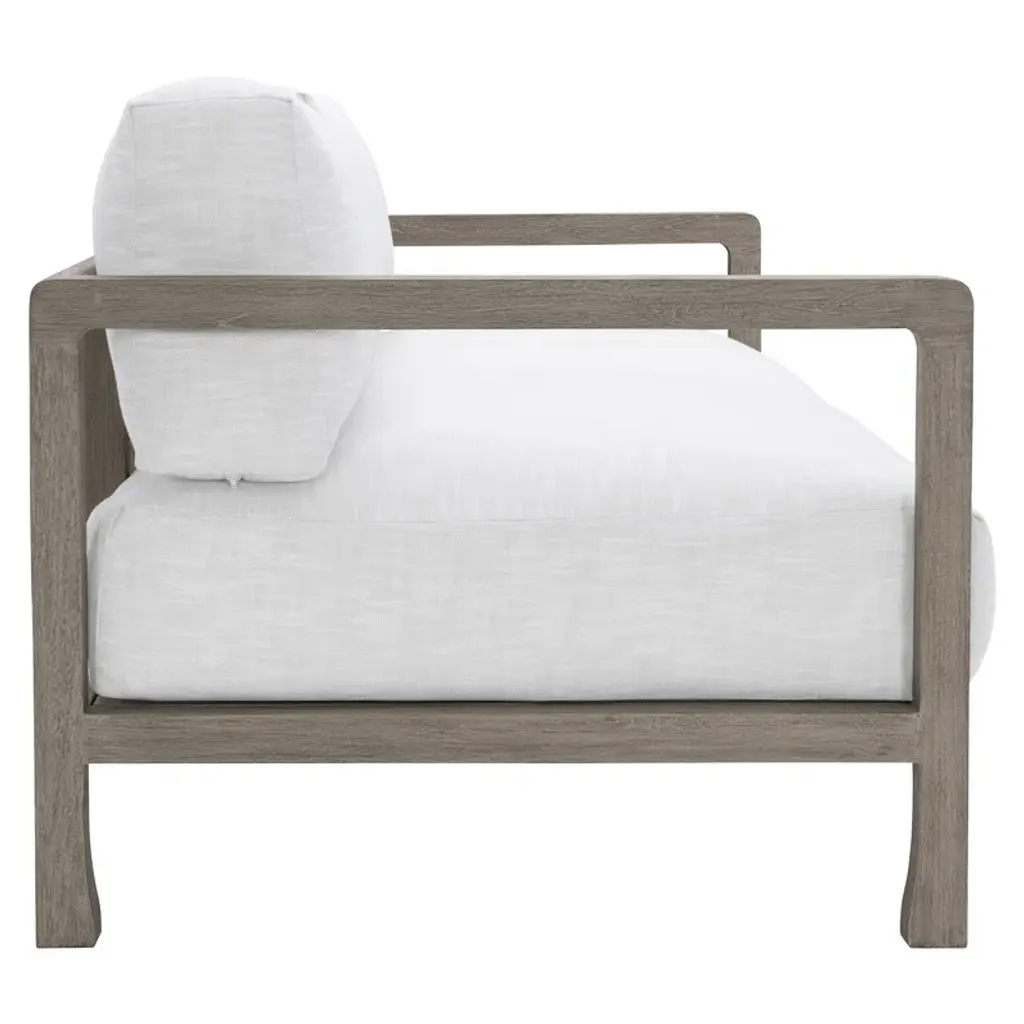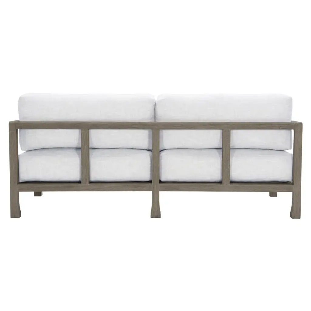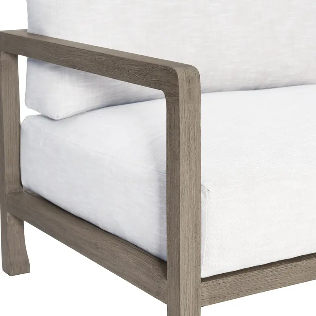 Simply designed and finely crafted, the Tanah sofa combines clean lines and geometric angles for a distinctly modern look. The open frame is crafted from weathered teak, a naturally durable and water-resistant material that grows more beautiful with age. Dressed in performance fabric, fiber back pillows and deep, sumptuous cushions provide unrivaled comfort. A stylish, sophisticated sofa for the luxe outdoor space.