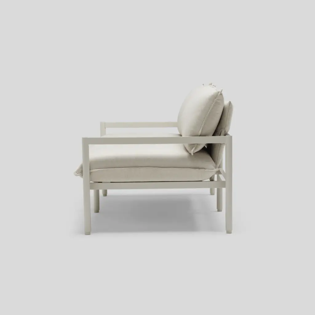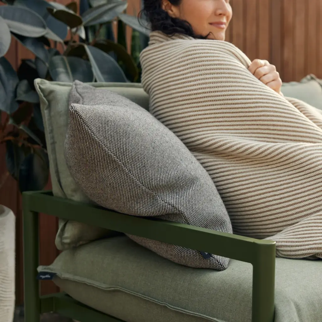 With deep, down-like cushions the Terra lounge collection gives you our highest level of outdoor comfort yet. Easy to clean and designed to last in all weather, it’s made with a resilient aluminum frame and monochromatic recycled Sunbrella® fabric made exclusively for Neighbor.