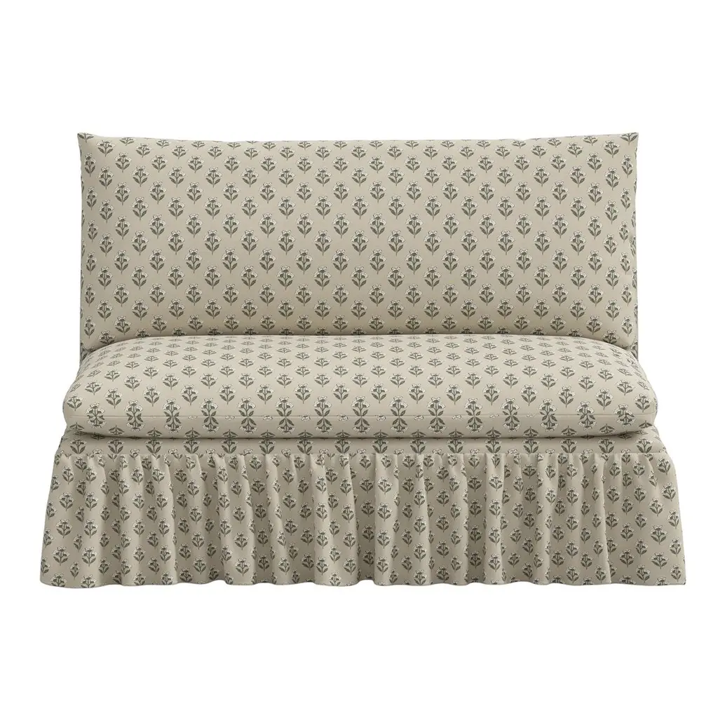 Introducing the Thelma Settee, a delightful blend of modern and vintage design that infuses a touch of cottage charm into your home. Its unique ruffled bottom sets it apart from typical contemporary furniture, adding unmistakable one-of-a-kind character to any space. Whether used as an inviting entryway bench, positioned at the edge of your bed, or as versatile seating in your living room or home office, the Thelma Settee promises to breathe fresh life into your decor. With its timeless appeal and versatile functionality, it's sure to become a beloved focal point in your home. Exclusively available from the Stoffer Home crafted by Cloth & Company collection.