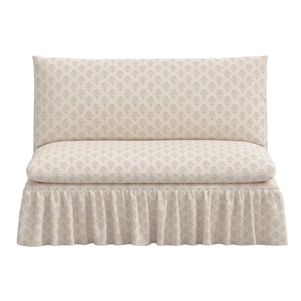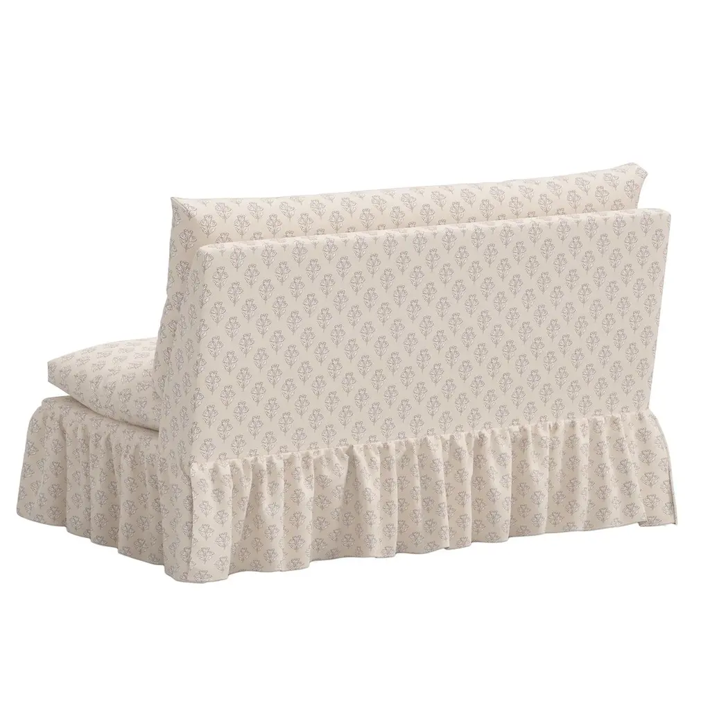 Introducing the Thelma Settee, a delightful blend of modern and vintage design that infuses a touch of cottage charm into your home. Its unique ruffled bottom sets it apart from typical contemporary furniture, adding unmistakable one-of-a-kind character to any space. Whether used as an inviting entryway bench, positioned at the edge of your bed, or as versatile seating in your living room or home office, the Thelma Settee promises to breathe fresh life into your decor. With its timeless appeal and versatile functionality, it's sure to become a beloved focal point in your home. Exclusively available from the Stoffer Home crafted by Cloth & Company collection.