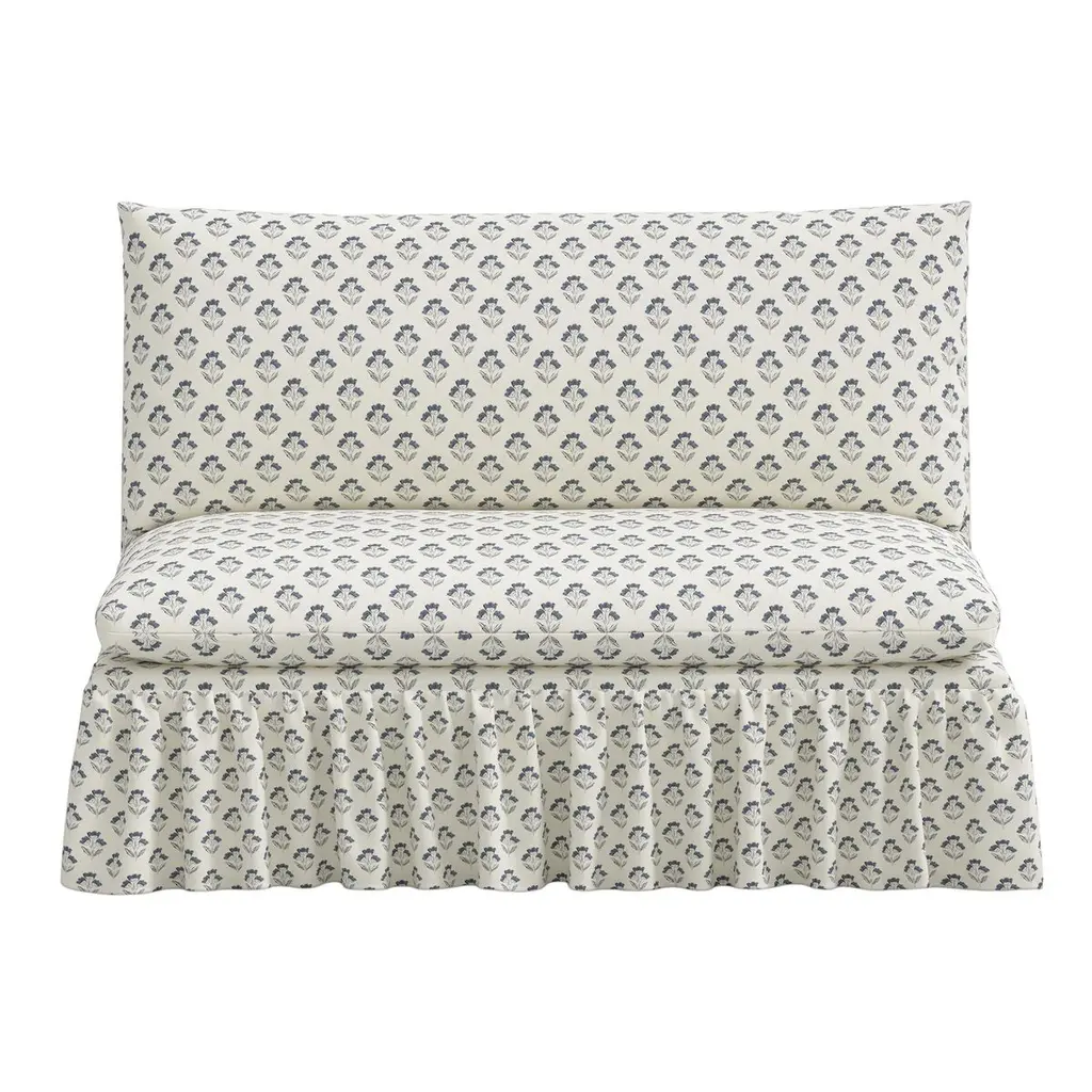 Introducing the Thelma Settee, a delightful blend of modern and vintage design that infuses a touch of cottage charm into your home. Its unique ruffled bottom sets it apart from typical contemporary furniture, adding unmistakable one-of-a-kind character to any space. Whether used as an inviting entryway bench, positioned at the edge of your bed, or as versatile seating in your living room or home office, the Thelma Settee promises to breathe fresh life into your decor. With its timeless appeal and versatile functionality, it's sure to become a beloved focal point in your home. Exclusively available from the Stoffer Home crafted by Cloth & Company collection.