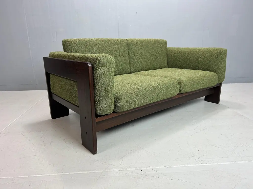 Tobia Scarpa New Green Boucle "Bastiano" 2-Seater Sofa For Knoll, 1960s, Italy