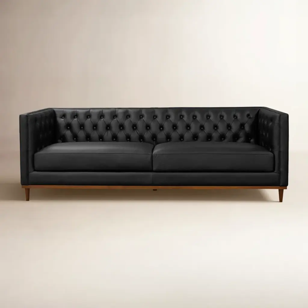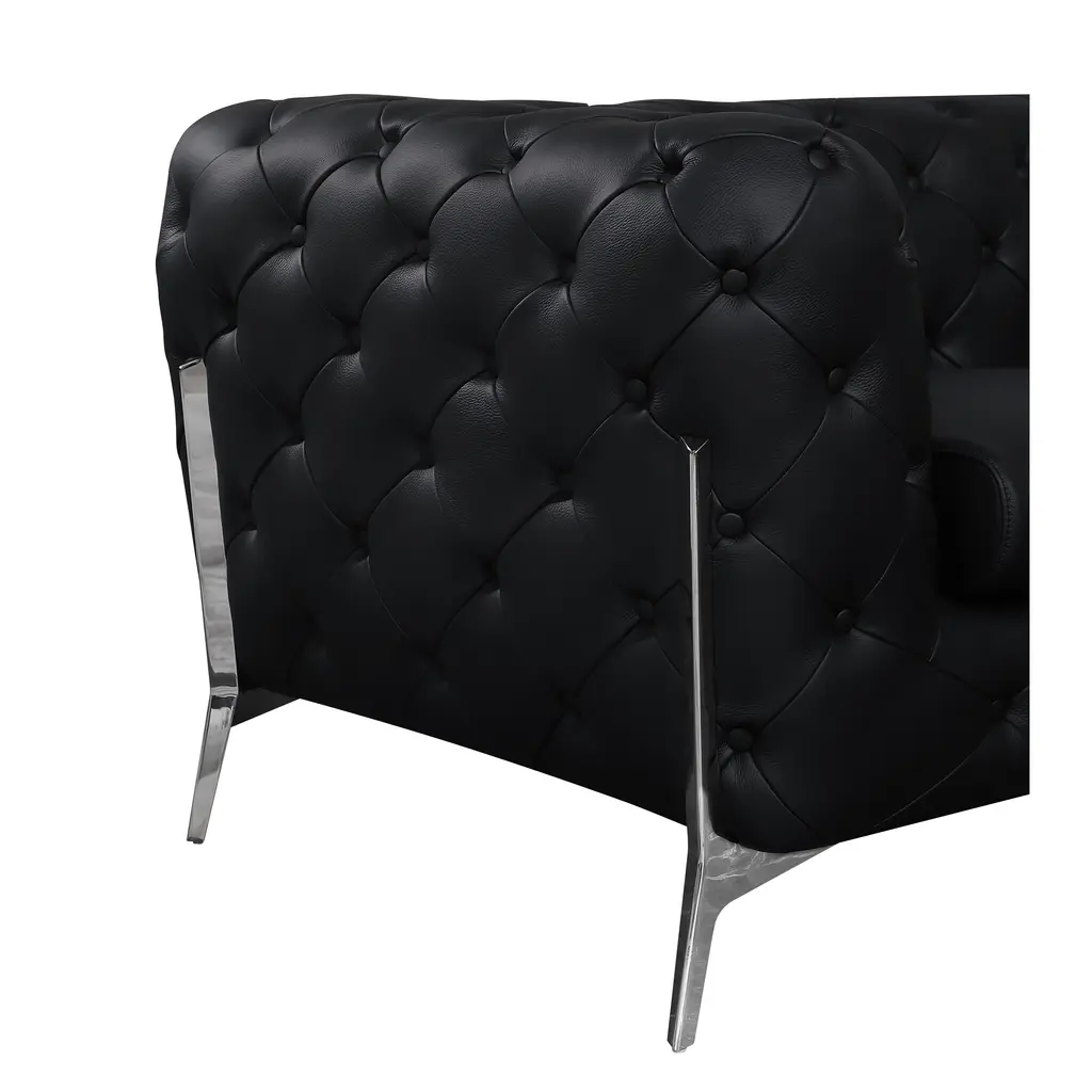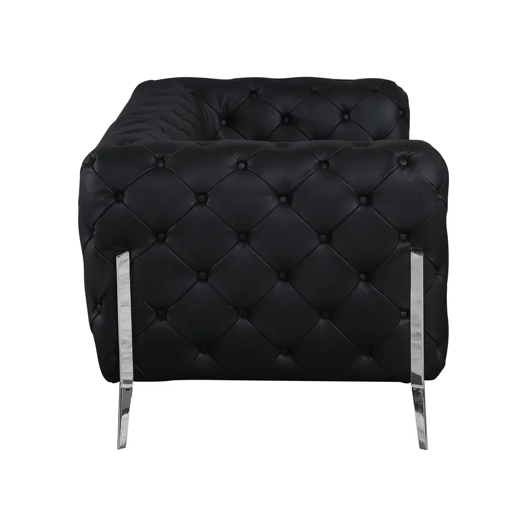 ▷Kiln-dried hardwood frame with reinforced corner blocks ▷3-layer high-density foam cushioning ▷Top Grain Italian Leather ▷Stainless steel chrome legs ▷Solid Brazilian Wood Frame