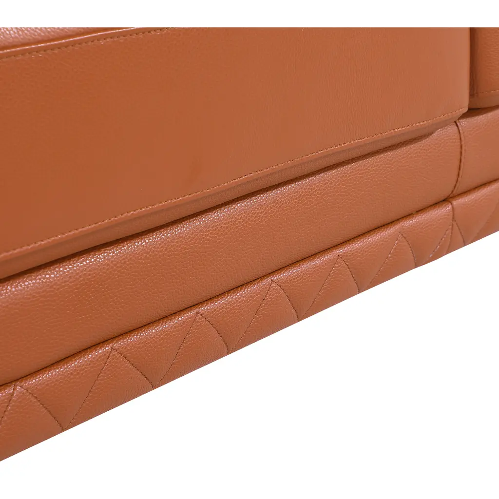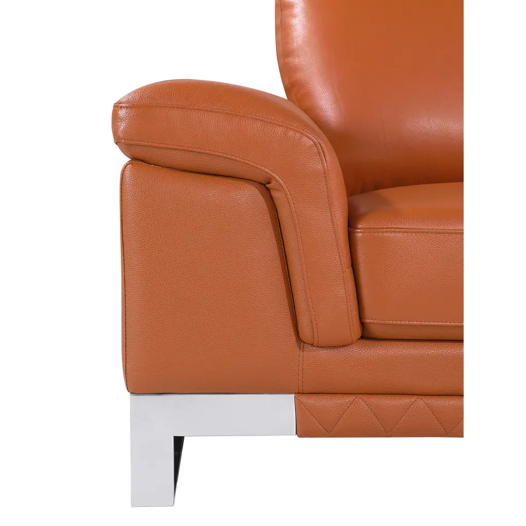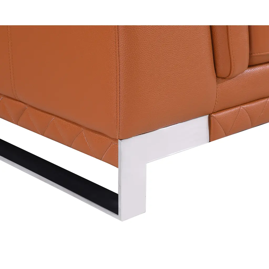 ▷Kiln-dried hardwood frame with reinforced corner blocks ▷3-layer high-density foam cushioning ▷Top Grain Italian Leather ▷Stainless steel chrome legs ▷Solid Brazilian Wood Frame