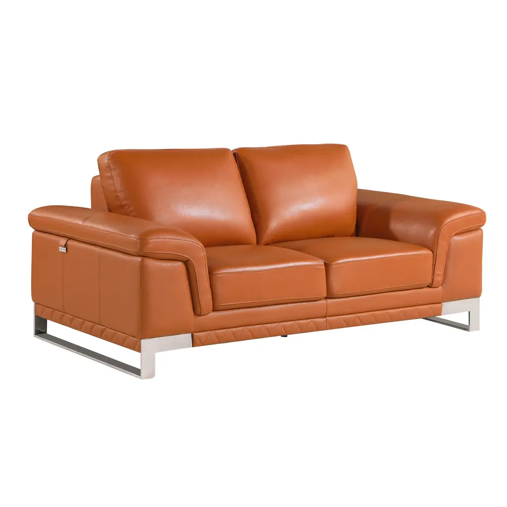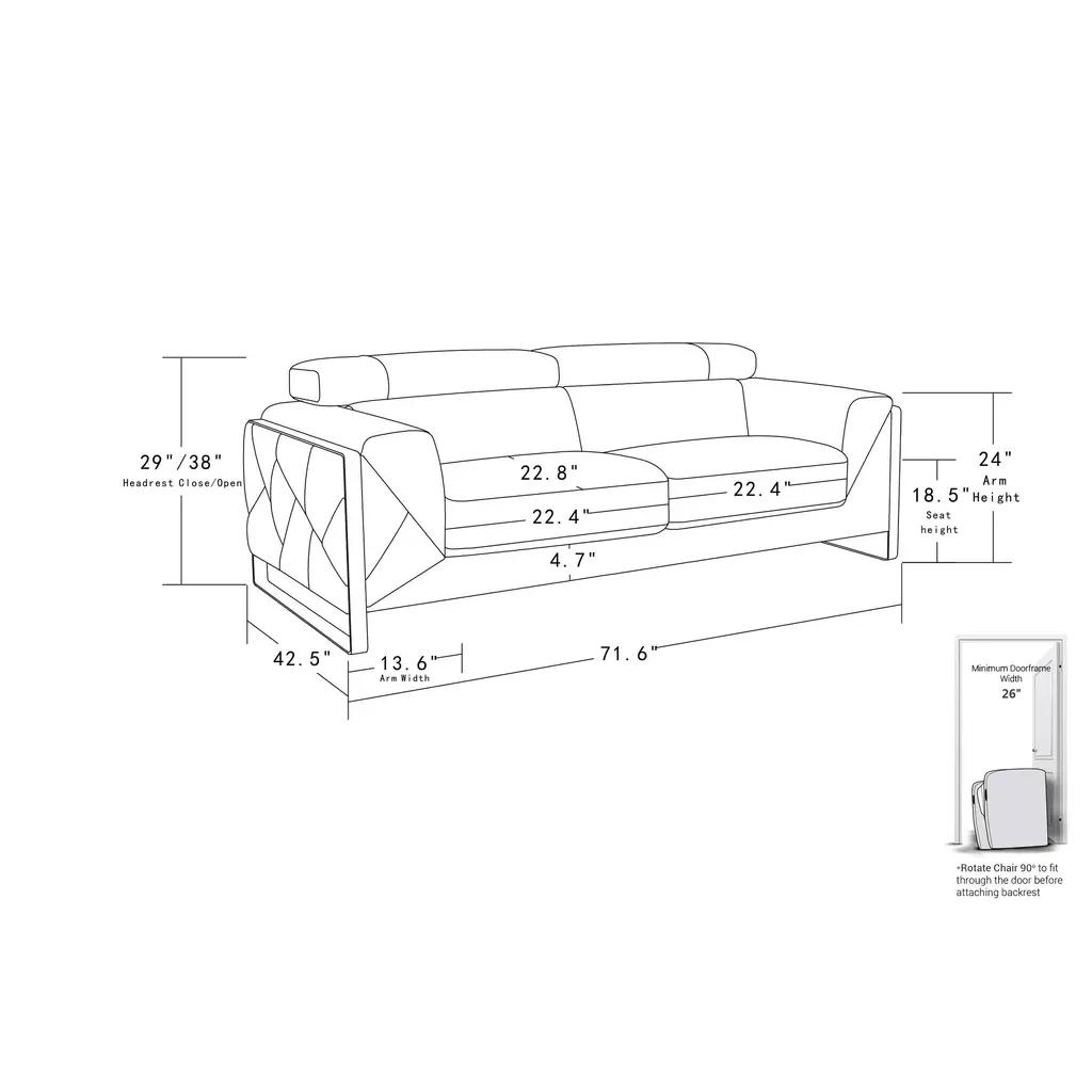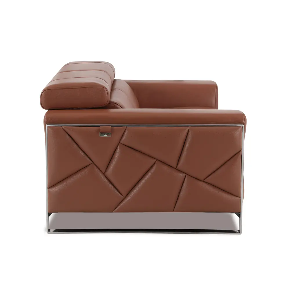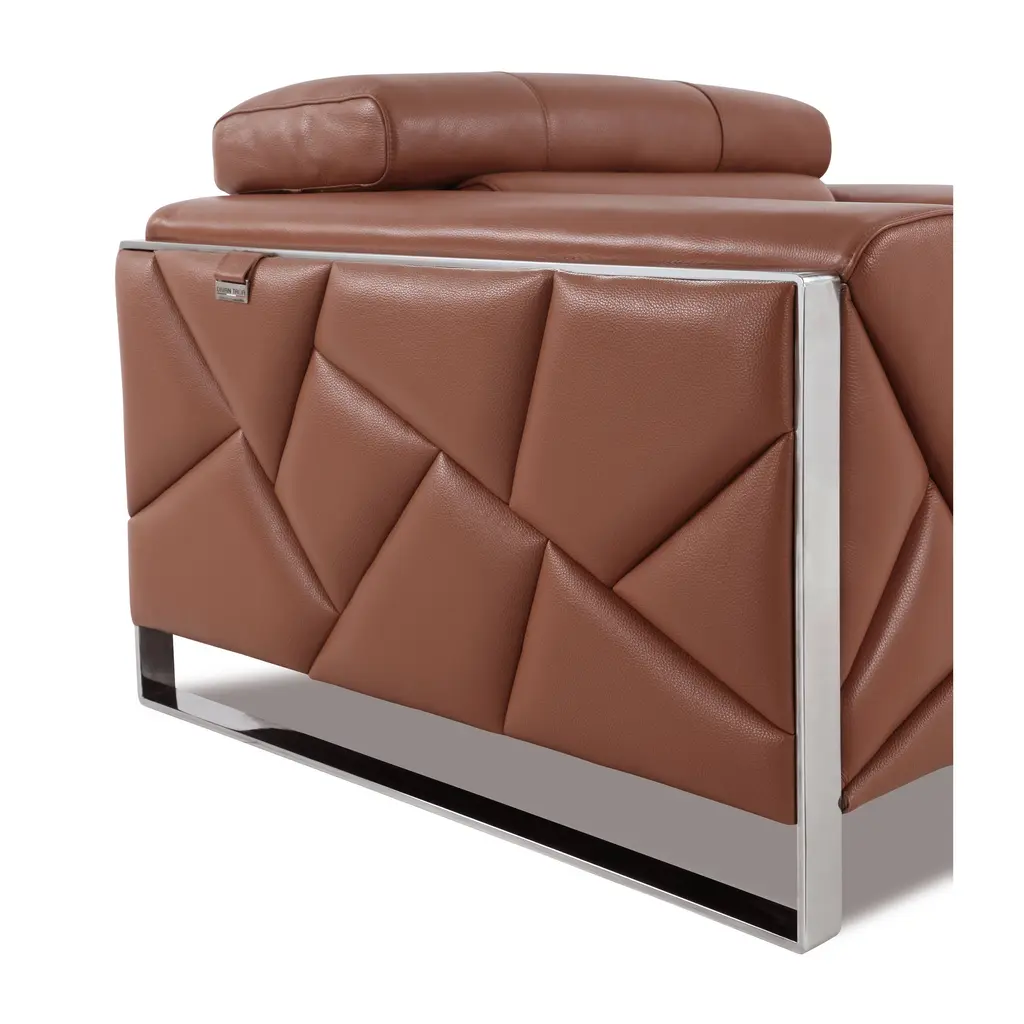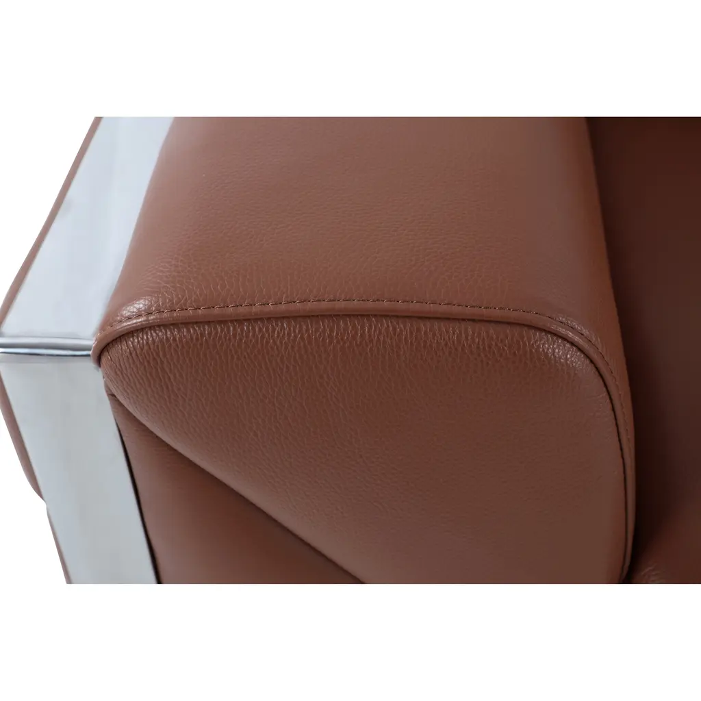 ▷Kiln-dried hardwood frame with reinforced corner blocks ▷3-layer high-density foam cushioning ▷Top Grain Italian Leather ▷Stainless steel chrome legs ▷Solid Brazilian Wood Frame