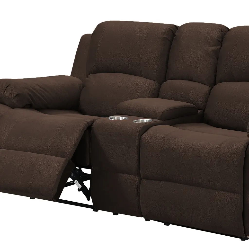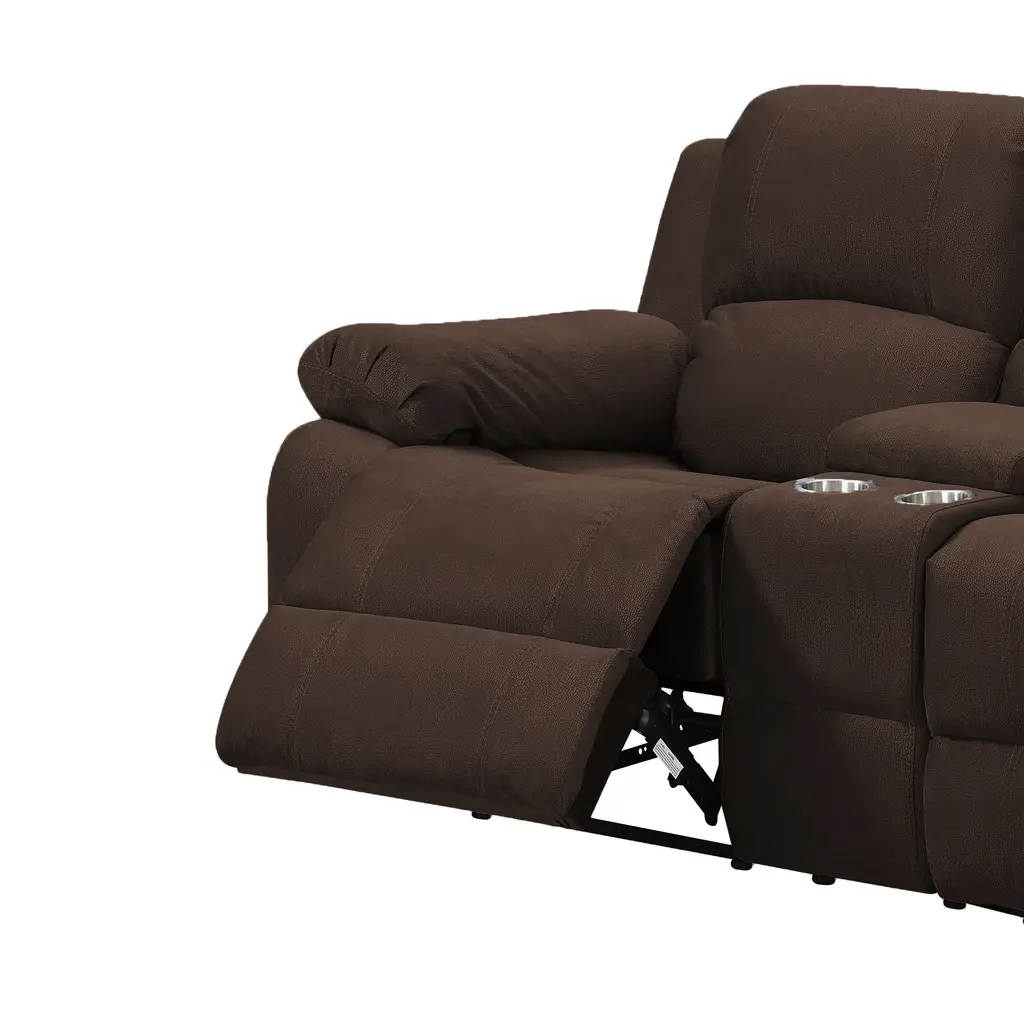 The Tracey double reclining loveseat features a deep chocolate polyester fabric that easily coordinates with a wide range of decor themes and comes equipped with a convenient storage console and 2 cupholders. The Tracey has it all; style, looks and function. Two (2) recliners, storage console to hide your favorite devices and cupholders to keep track of your favorite drinks.With Plush Cushioning Throughout, a Storage Console for your Favorite Devices and Remotes, and 2 Cup Holders, the Modern Loveseat is the Ultimate Seating Choice for Entertaining Your Guests. You'll have Trouble getting your Guests to Leave Once they Experience it. Featuring Clean Lines and Carefully Tufted Back Cushions, the Loveseat Comes in a Beautifully Rich Chocolate Color that Perfectly Fits in with Any Home Décor. Expertly Crafted from Select Hardwoods and Upholstered in a High Quality 100% Polyester Fabric, the Modern Loveseat is an Exceptionally Durable Piece. Spot Clean the Loveseat when Needed.TRUST AC PACIFIC: Proudly Made by AC Pacific Bringing Comfort, Style and Affordability Since 1994. We Stand Behind Our Products