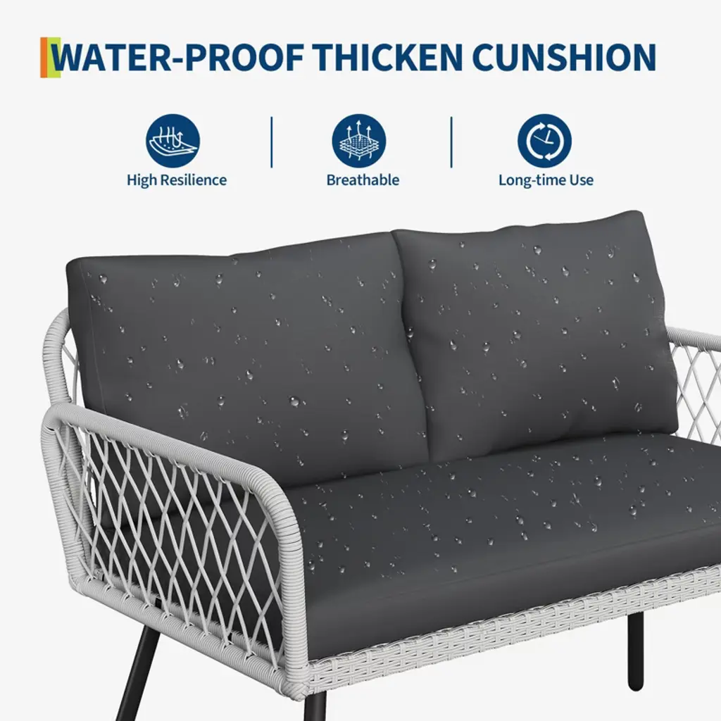 Tropow 4-piece Grey Patio Furniture Set ̈C Pe Wicker Loveseat With 2 Chairs & Glass Coffee Table For Garden/balcony (5mm Cushions Included)