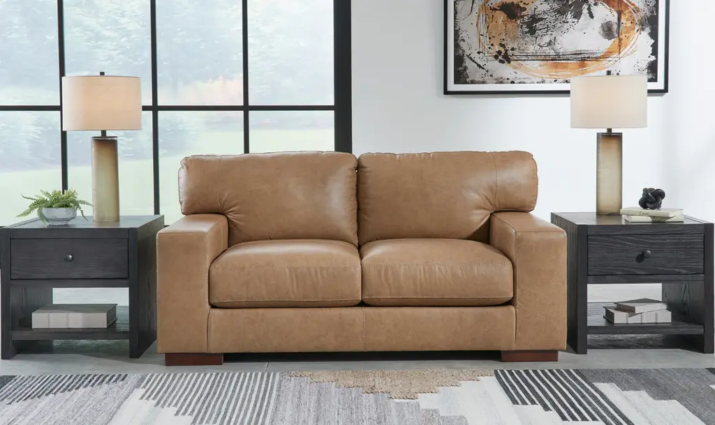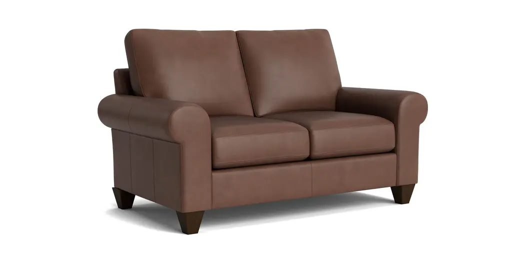 True Custom Leather Large Roll Arm Loveseat