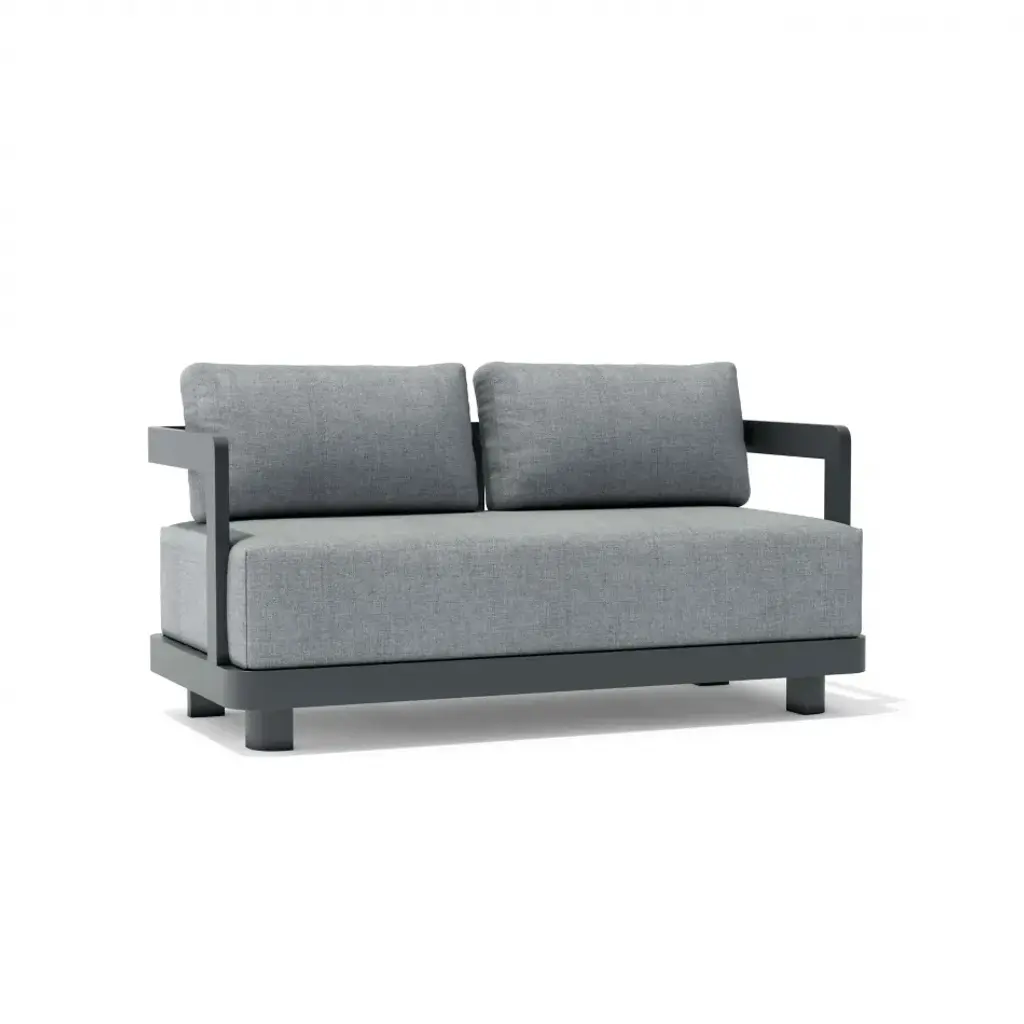 Welcome comfort and durability to your favorite outdoor spaces with the Tulum 2-Seater Sofa from Vondom. Designed by Eugeni Quitllet, this sleek sofa features high-quality materials and advanced technology for both indoor and outdoor use. Elegantly harmonizing aluminum with solid teak wood, this sofa features a comfortably padded seat and back, wrapped in durable PET upholstery crafted from recycled plastic bottles. Kick back and relax on a patio or poolside, in the perfect spot to entertain or catch some sun. Highlights