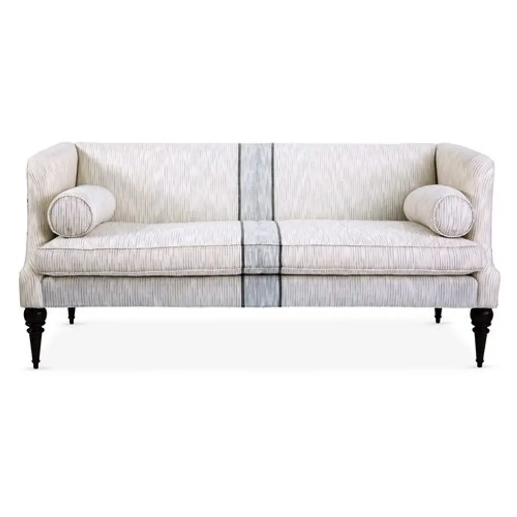 Crafted with a durable kiln-dried hardwood frame, this tuxedo-style settee balances a classically elegant silhouette with handwoven organic cotton upholstery that feels fresh and fashion forward. Bolster pillows included. Because the fabric is handcrafted, color variations can occur.