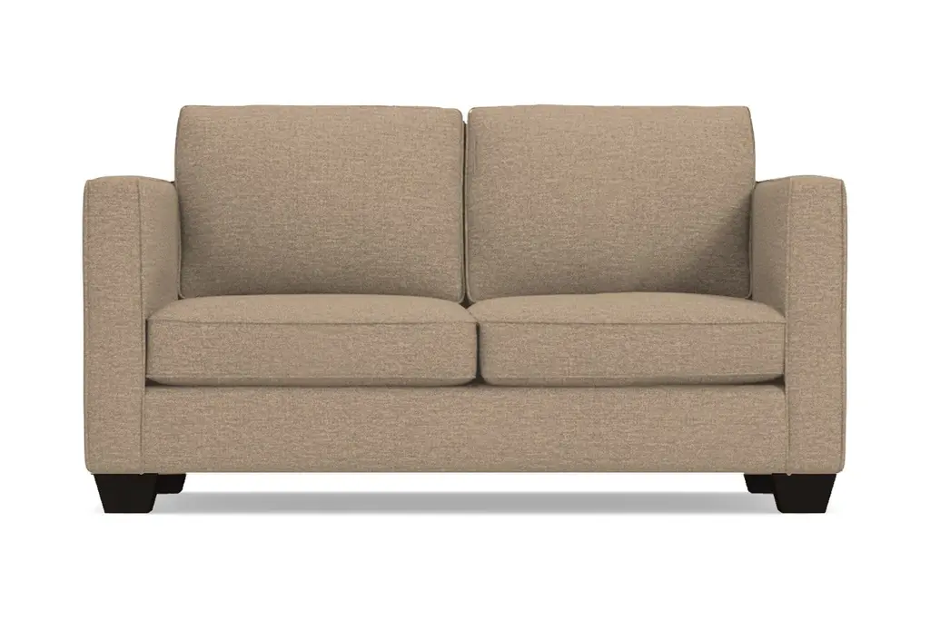 Who says apartment living has to cramp your style? Certainly not us. Apt2B specializes in apartment furniture with a modern flair and the Tuxedo Sofa is no exception. Designed for a smaller living space, this two-seat sofa still features all the comfort synonymous with our Tuxedo Collection, with knife-edged plush cushions and a relaxed vibe. You have your choice of nearly 30 different color fabrics and you can easily dress it up with a few throw pillows. Our breathable upholstery is stain resistant and easy to clean, making this a great choice if you have kids or pets. Our Tuxedo Sofa is made in the United States and comes with a limited lifetime warranty. It's an investment you can't afford to pass up! All dressed up and nowhere to go. The Tuxedo Collection was made for staying in. A transitional look that can translate to any style room, dress it up with pillows or throws to achieve your own look!
