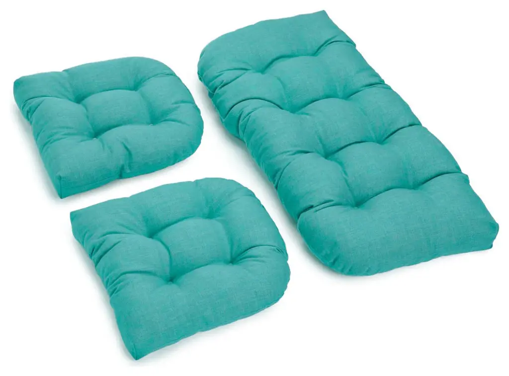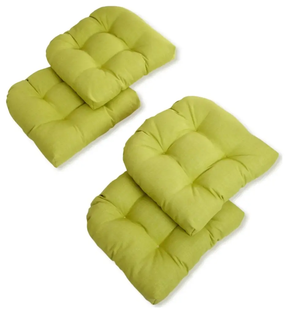 Outfit your outdoor ensemble with the comfy and stylish U Shaped Tufted cushions. This three-piece set features deep tufting and durable outdoor upholstery that withstands the elements. With one love seat cushion and a pair of U-shaped chair cushions, the U Shaped Tufted set is well equipped to add a layer of softness to all your patio furniture.3-piece cushion set2 U-shaped chair cushions and 1 love seat cushionCovered in outdoor fabricTufted designColor: OliveMaterial: Cotton, polyesterChair cushion dimensions: W 19" x D 19" x H 5"Love seat dimensions: W 42" x D 19" x H 5"