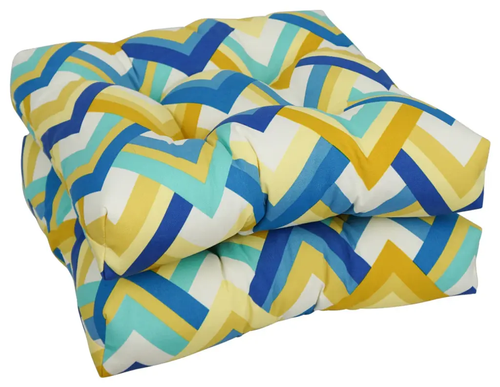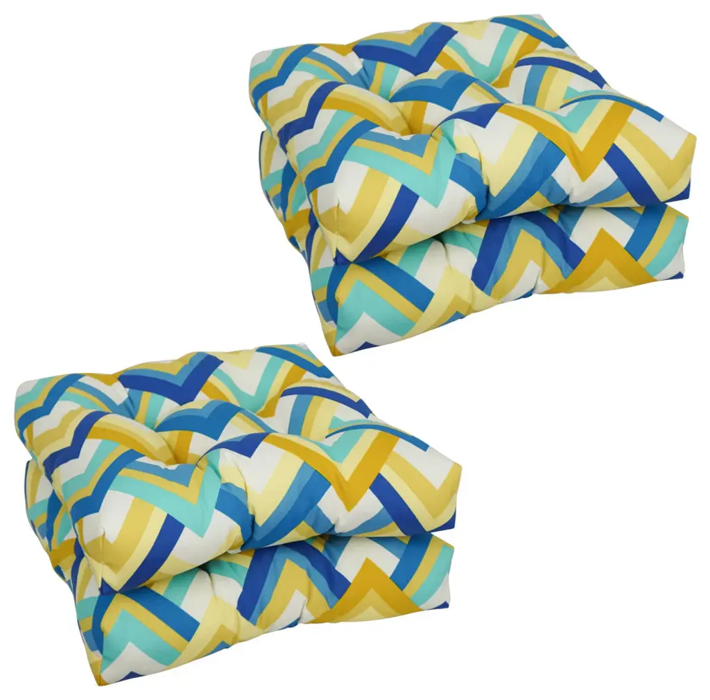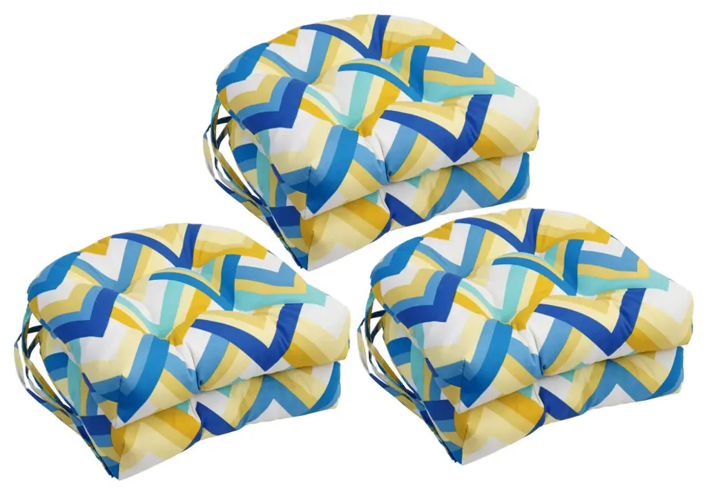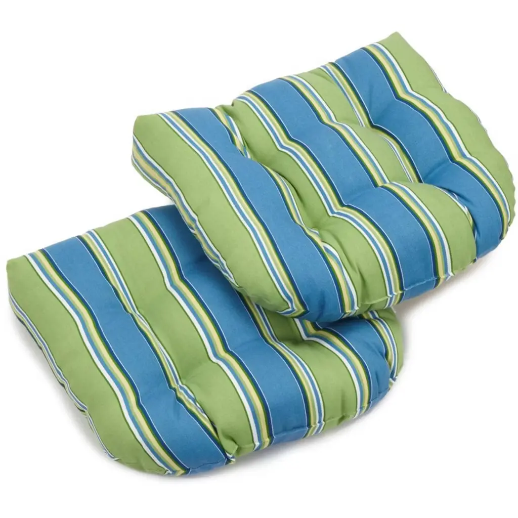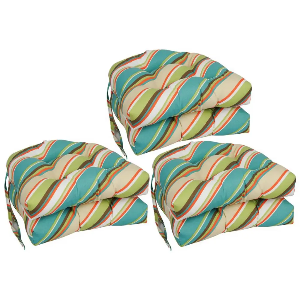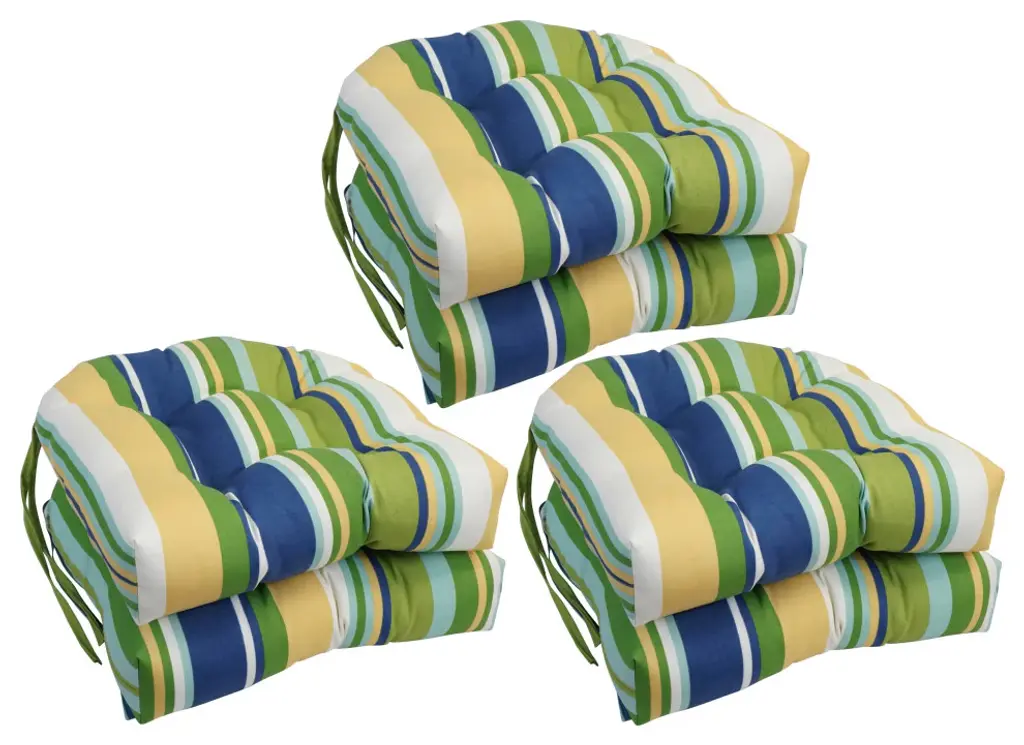 Outfit your outdoor ensemble with the comfy and chic U Shaped Tufted cushions. This three-piece set features deep tufting and durable outdoor upholstery that beautifully resists the elements. With one love seat cushion and a pair of U-shaped chair cushions, the U Shaped Tufted set is well-equipped to add a layer of softness (and style) to all your patio furniture.3-piece cushion set2 U-shaped chair cushions and 1 love seat cushionCovered in outdoor fabricTufted designDesign: SantoriniMaterial: Cotton, polyesterChair cushion dimensions: W 19" x D 19" x H 5"Love seat dimensions: W 42" x D 19" x H 5"