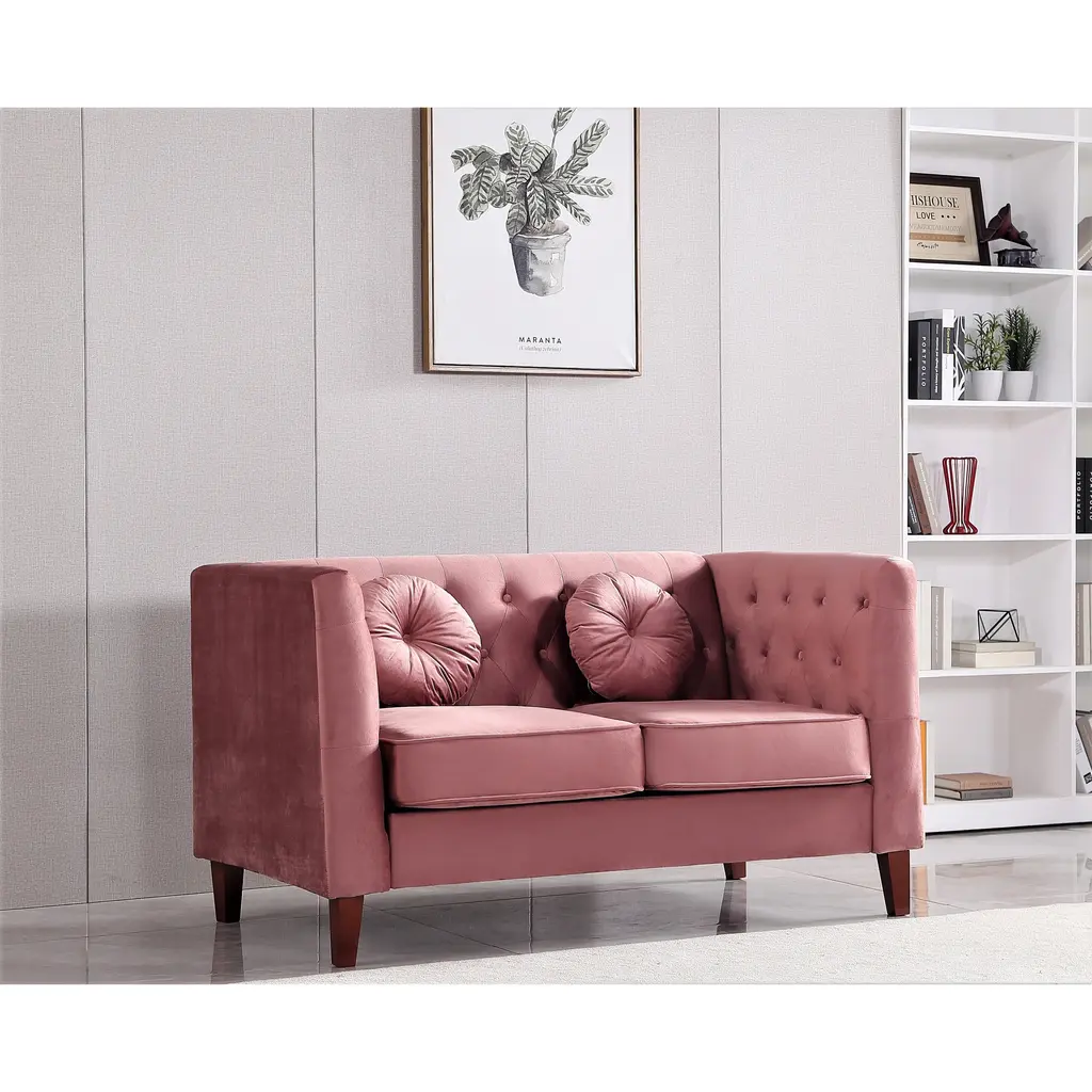 Us Pride Furniture Velvet Classic Chesterfield Loveseat With Wood Legs - Rose