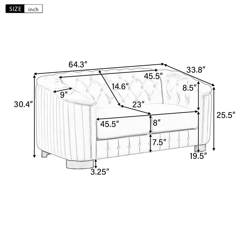 Velvet Loveseat Sofa Modern Tufted Couch With Thick Removable Seat Cushion Upholstered Deep Seat Sofa For Bedroom - Beige