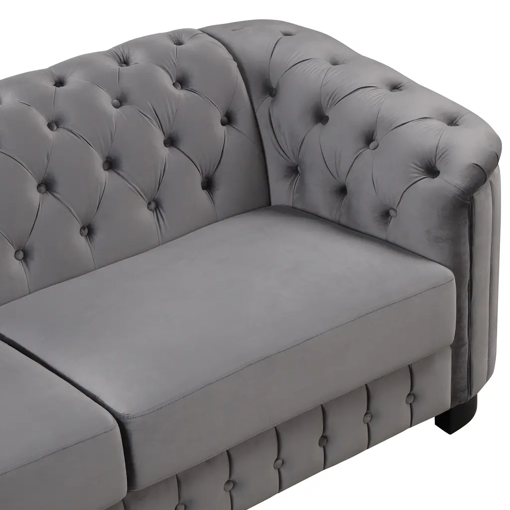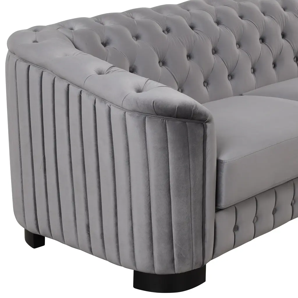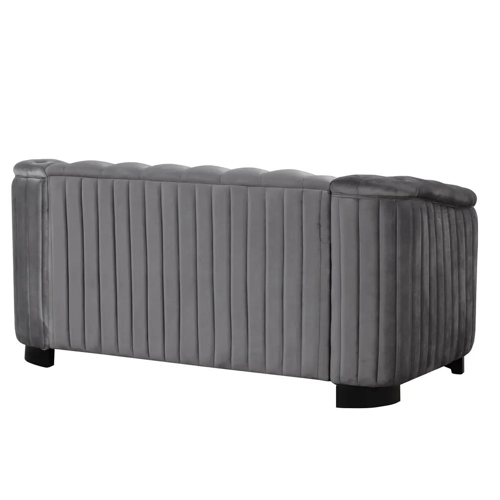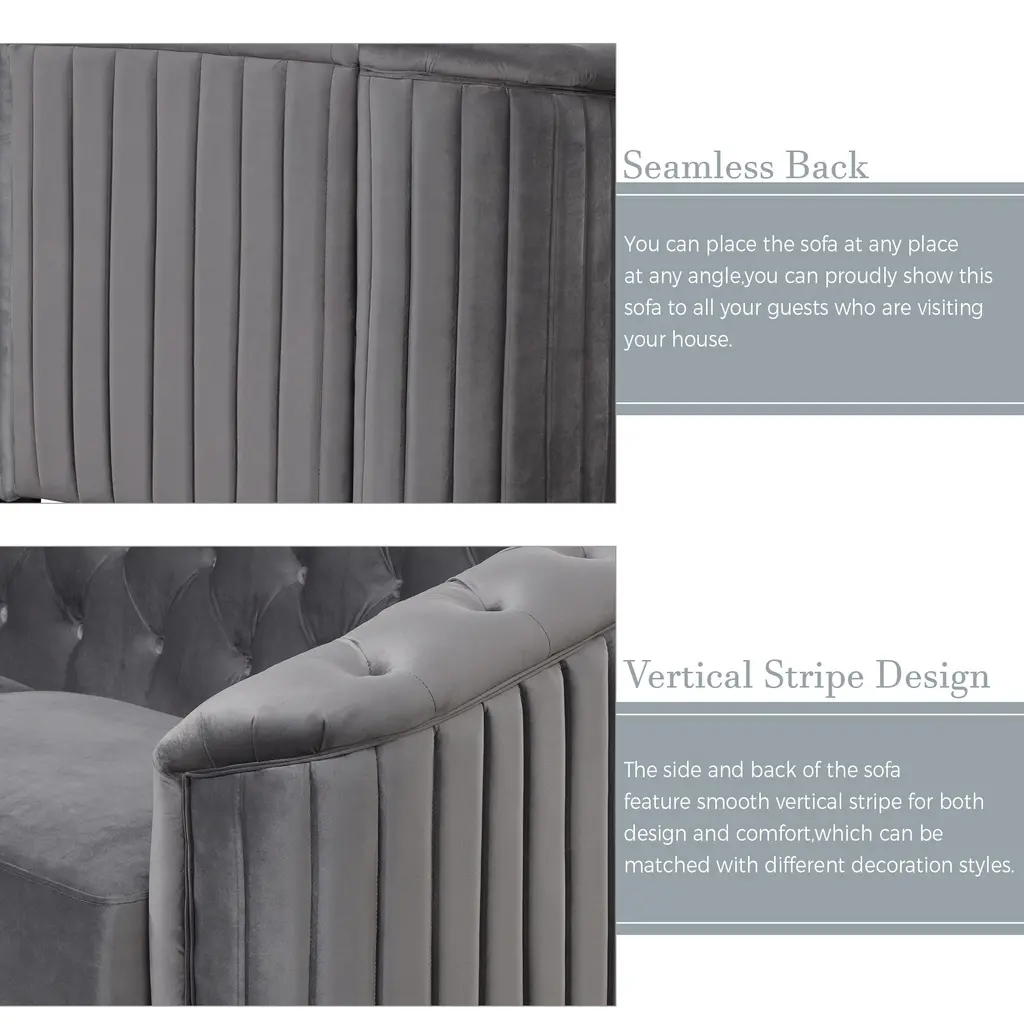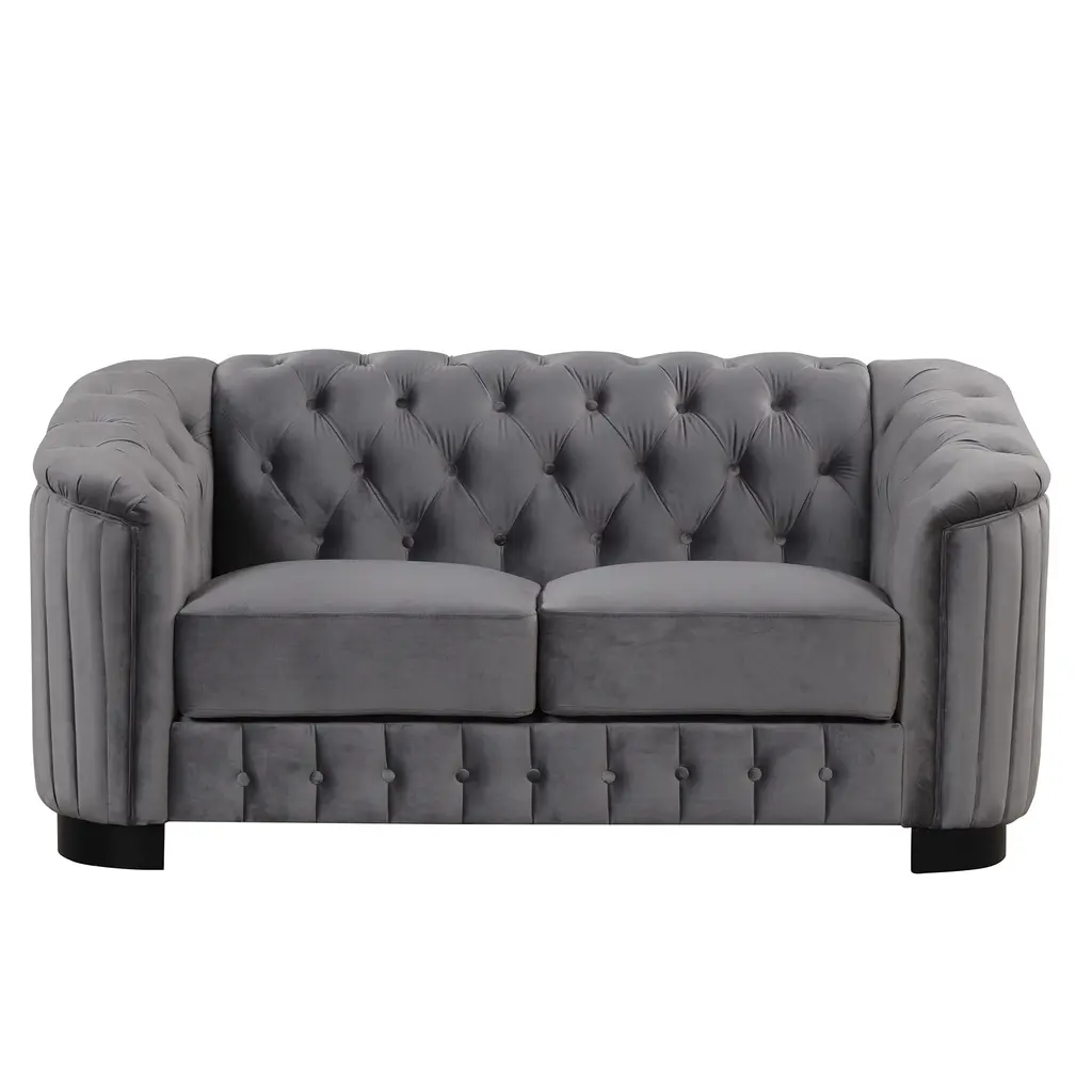 Velvet Loveseat Sofa Modern Tufted Couch With Thick Removable Seat Cushion Upholstered Deep Seat Sofa For Bedroom - Gray