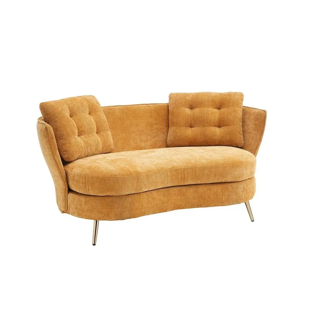 Velvet Loveseat With Golden Metal Legs For Small Spaces - Yellow