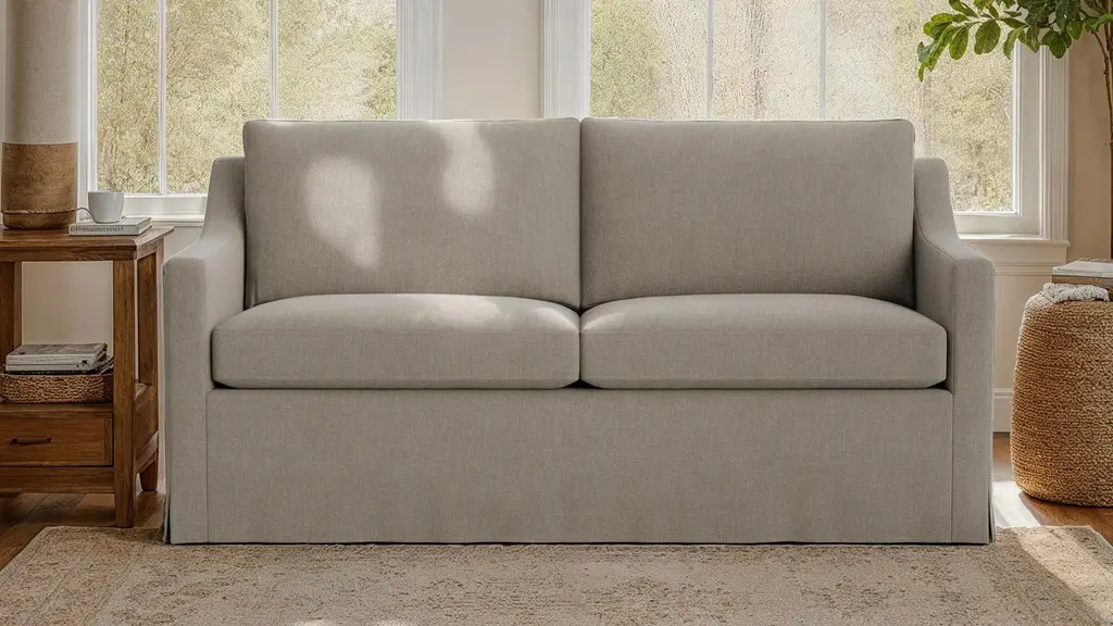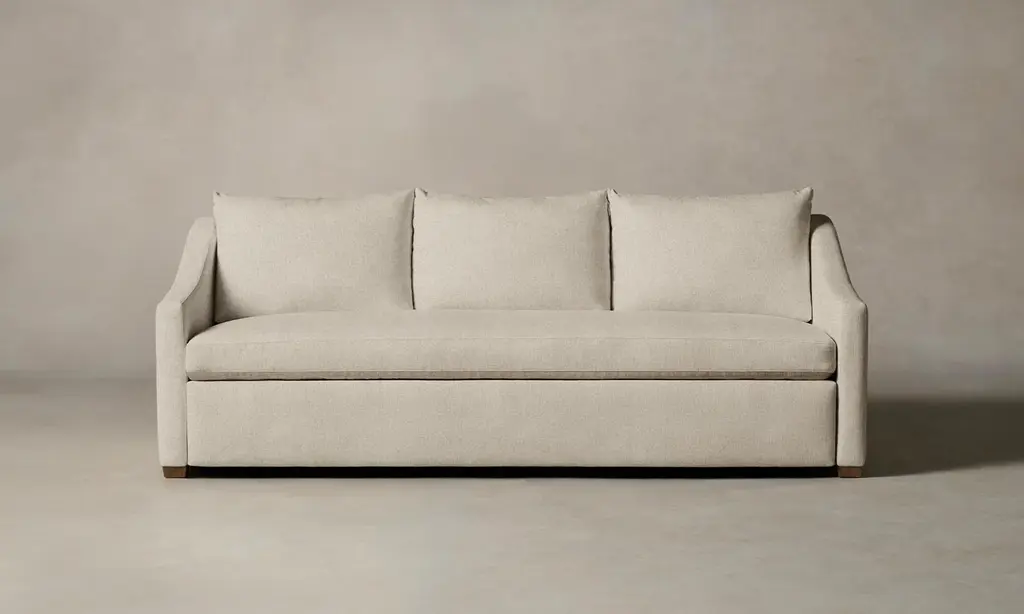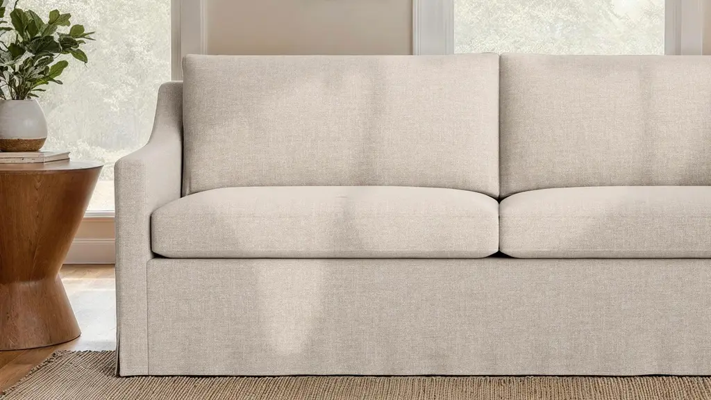 DESIGN Modern tailoring meets traditional elegance in the Vera Skirted Loveseat. Equally at home in a sleek urban space or a laid-back beach retreat, the Vera Skirted Loveseat features a high back and soft-yet-supportive cushions - perfect for hosting guests or long lounging sessions. Customize your Vera Skirted Loveseat with 100+ luxe and performance textile options. Choose one of our performance weave fabrics to capture a traditional skirted look (without sacrificing durability!) or velvet for an extra dose of drama. For assistance picking the perfect fabric, reach out to our design team. For a more transitional style, explore the Vera collection with exposed wooden legs. Made in the USA and designed to stand up to everyday life, the Vera Skirted Loveseat is backed by our limited lifetime warranty. FEATURES Solid Foundation: Our frames are constructed from precision-cut, FSC-certified engineered wood for unmatched strength and stability, featuring reinforced, interlocking joinery for added durability. Customizable Cushion Options: Choose from foam & fiber or down alternative cushions. Foam & fiber cushions are made from high-quality, high-resiliency CertiPUR-US® foam wrapped in premium fiber, giving you a supportive, comfortable sit and a sleek look that's low maintenance. Down alternative cushions feature a back cushion that's filled with 100% premium fiber and a seat cushion with a high-quality, high-resiliency CertiPUR-US® foam core wrapped in down-alternative fiber. Down alternative cushions give you sink-in comfort with a supportive sit & a relaxed look. Regular fluffing keeps your piece looking perfect. CertiPur-US® foam is held to the highest standards of product safety and durability, so you can rest easy. Supportive Webbing Suspension: Designed to maximize comfort, our premium webbing system provides a resilient foundation. Customizable Upholstery: Choose from a vast selection of durable premium and performance fabrics to personalize your Vera Skirted Loveseat's look.