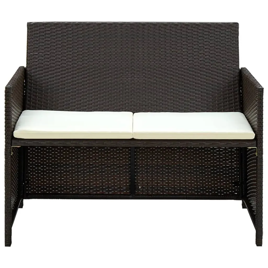 This 2-seater garden sofa combines style and comfort, perfect for your outdoor downtime. It's designed with a sleek look and top-notch materials, featuring a lovely brown polyethylene rattan finish that not only looks great but also withstands the elements, making it fit right in at gardens, patios, and balconies. Perfect for couples or small gatherings, it creates an inviting spot for relaxed chats and sunny afternoons. Weather-resistant materials ensure your sofa lasts through the seasons, letting you enjoy outdoor moments without worries. Removable cushions make for easy cleaning, keeping your sofa looking fresh with minimal hassle. This sofa is perfect for gatherings, creating a comfy space for friends and family to chat and relax. The strong powder-coated steel frame offers great support, ensuring the sofa stays put when in use, ideal for outdoor living. This trendy garden sofa enhances any outdoor décor, making it a stylish addition to your furniture collection.
