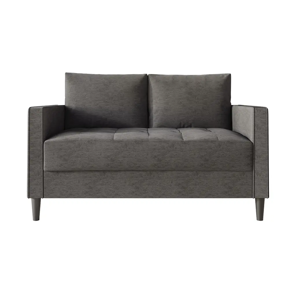 This dark grey 2-seater sofa is a snazzy option for small spaces or cozy offices, blending comfort with a modern vibe. Its sleek fabric and comfy cushions create a welcoming feel, making it the perfect spot to relax or entertain. Stylish Modern Look: With sleek lines and a trendy design, this sofa adds flair to any indoor space while keeping a minimalist touch.Comfort Assured: The thick seat and back cushions offer a plush sit, ensuring you'll want to lounge about for ages.Versatile Use: Great for living rooms, offices, or entertaining areas, it’s perfect for chats, movie nights, or just kicking back.Easy Care: The removable cushion covers with zip fasteners make cleaning simple, so your sofa stays looking fresh.Strong and Supportive: Built with a tough metal frame, this loveseat holds up to 485 lbs., perfect for daily use without worries.