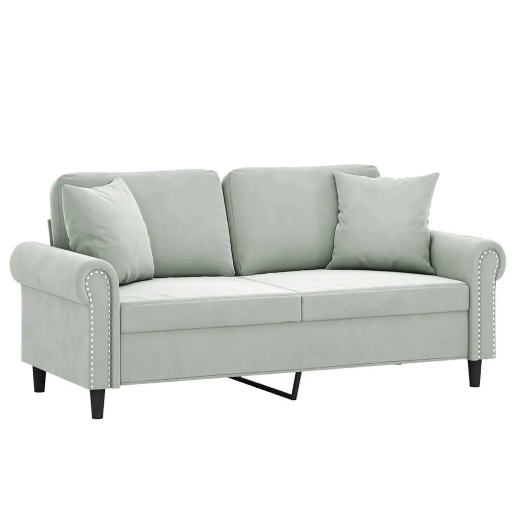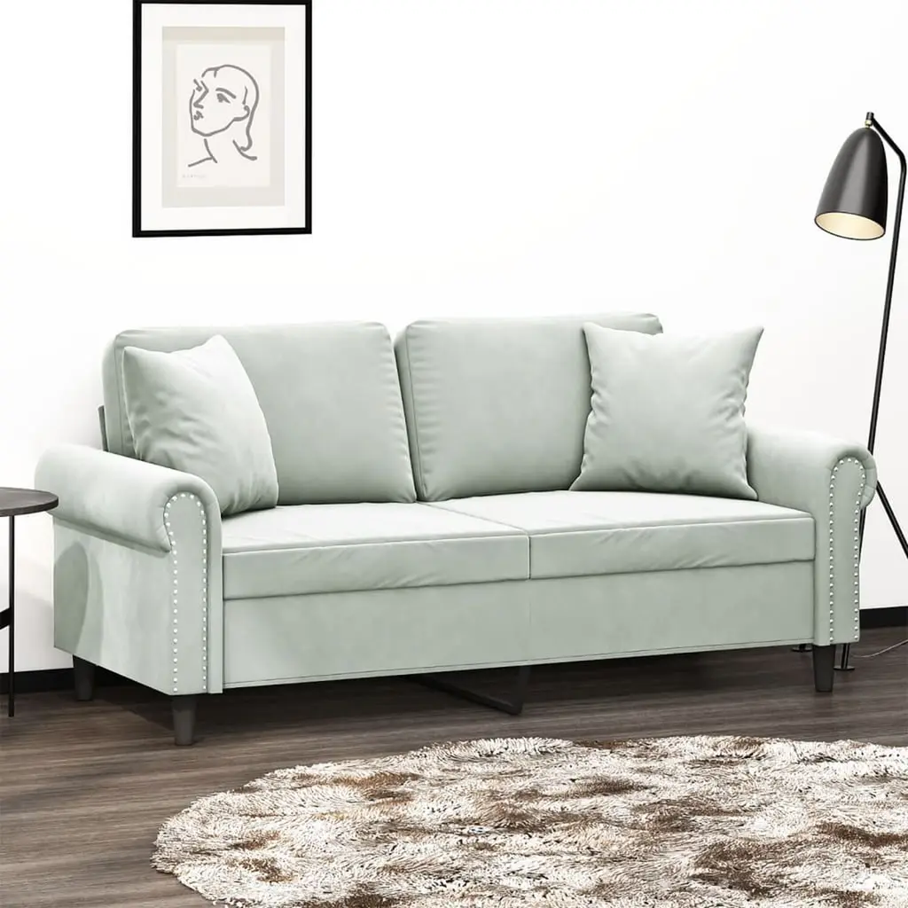 This fab 2-seater sofa shows off modern style and comfort, making it a top pick for any living area. Dressed in light grey velvet, its stylish design goes with loads of interior styles, giving you a comfy spot for chilling or hanging out. Sleek and modern: This design has clean lines that make it stand out in any room. It's flexible enough to fit with all kinds of decor, whether traditional or modern, giving you both style and utility.Thickly padded cushions: Experience a touch of luxury with the ample padding, enhancing comfort for lounging about.Perfect for cozy meet-ups: This 2-seater sofa is made for cuddly chats or movie nights, creating a comfy nook for two. Its compact size means you can place it anywhere without it feeling cramped.Durable velvet upholstery: This soft velvet not only looks and feels good but is easy to keep clean too. Just blot spills quickly and avoid scrubbing too hard to keep it looking fresh.Removable cushion covers: The cushions have zips, so you can take them off for easy cleaning. This makes it a breeze to keep your sofa in tip-top shape without needing a lot of effort.