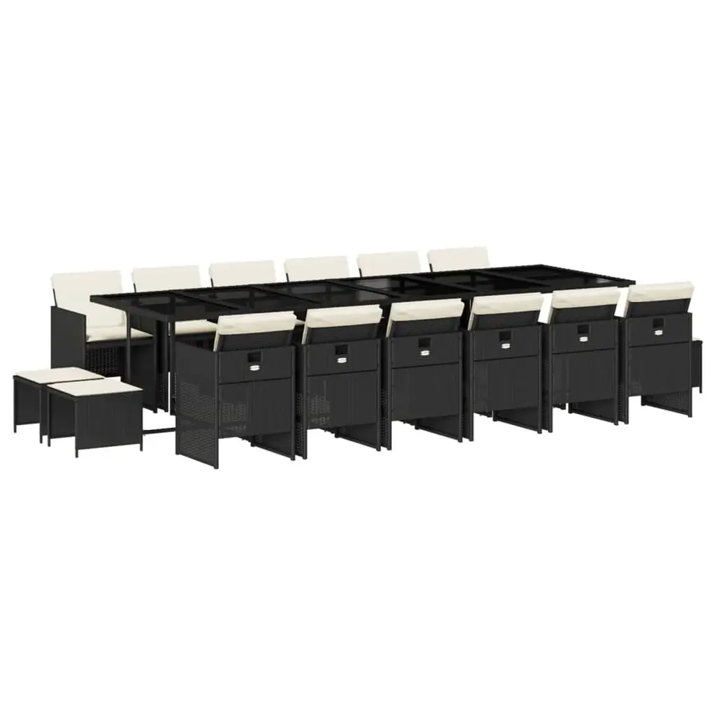This 13-Piece Garden Dining Set is made for enjoying the outdoors, blending a modern look with practicality. With a sleek rectangular table, high-back chairs, and comfy cushions, this set perks up any outdoor space, perfect for family and friend gatherings while sprucing up your patio décor. 【Comfortable Cushions】 This set includes plush, removable cushions for a comfy dining experience. Their weather-resistant fabric is perfect for outdoor enjoyment, letting you enjoy meals and relaxation without a hitch in your garden or patio. 【Durable Materials】 Made with UV-resistant poly rattan, this dining set withstands the weather while keeping its good looks. The heavy-duty powder-coated steel frame gives it extra strength and stability for regular outdoor use. 【Foldable Design】 Each chair folds up for easy storage when you’re not using it. This is super handy for tight spots, helping you keep your area tidy while making setup for big get-togethers a breeze. 【Ample Seating Capacity】 This dining set comfortably seats up to 12 people, making it ideal for outdoor parties, family get-togethers, or casual meals. Its spacious layout allows easy movement while serving outdoors. 【Smart Design Features】 With a stylish tempered glass top, this set mixes practicality with flair. The smooth surfaces make cleaning a walk in the park, ensuring your dining experience stays pleasant with minimal upkeep needed.