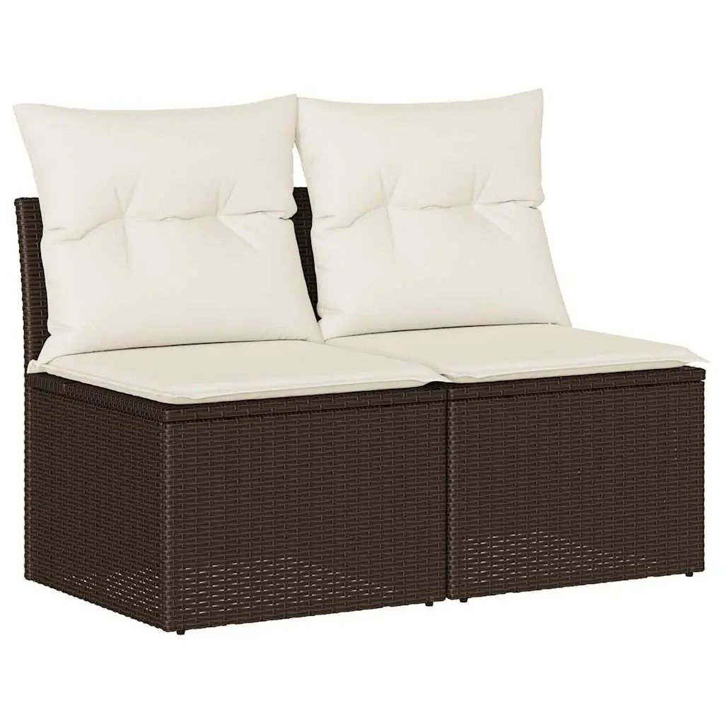 This 2-Seater Garden Sofa is both stylish and practical, made from tough poly rattan for a modern twist. It not only looks good but also offers comfort and functionality, making it perfect for casual hangouts or lazy sunny afternoons. Ideal for balconies, patios, or gardens. Modular Design: The sofa can be rearranged as needed to suit your outdoor layout.Water-resistant Cushions: Each cushion is made with water-resistant fabric to keep them in great shape even in light rain.Storage Options: There are hidden storage compartments in the sofa, perfect for stashing your cushions and other bits.Sturdy Frame: Made from durable powder-coated steel, this sofa is built to last and is safe for everyday use.Elegant Look: Its modern style enhances any outdoor area, fitting well with various decorating themes.