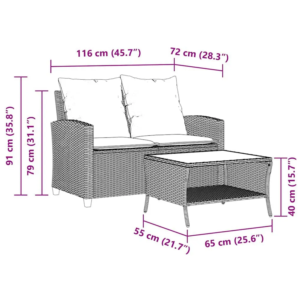 This 2-seater garden sofa gives you a nice mix of style and comfort, perfect for giving your outdoor spaces a lift. It’s designed for comfy seating and features modern looks with tough materials that stand up to the elements, making it a top choice for patios, balconies, and gardens. This sofa is made from poly rattan, which is lightweight yet really durable. It's known for its low maintenance needs and high weather resistance, making it a popular choice for outdoor furniture. Another great feature is the tempered glass table, providing a sleek, easy-to-clean surface that adds elegance to your setup while being robust enough for everyday use. This garden sofa comes with thickly padded cushions, ensuring a comfy seating experience for you and your guests, blending relaxation with functionality. The removable cushion covers make upkeep easy and convenient, so you can keep your outdoor furniture looking fresh and welcoming. The sturdy powder-coated steel frame guarantees the sofa’s stability, making it a reliable addition that can handle daily outdoor use.