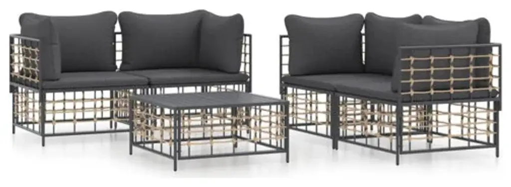 Vidaxl Patio Furniture Set 5 Piece Loveseat With Cushions Anthracite Poly Rattan