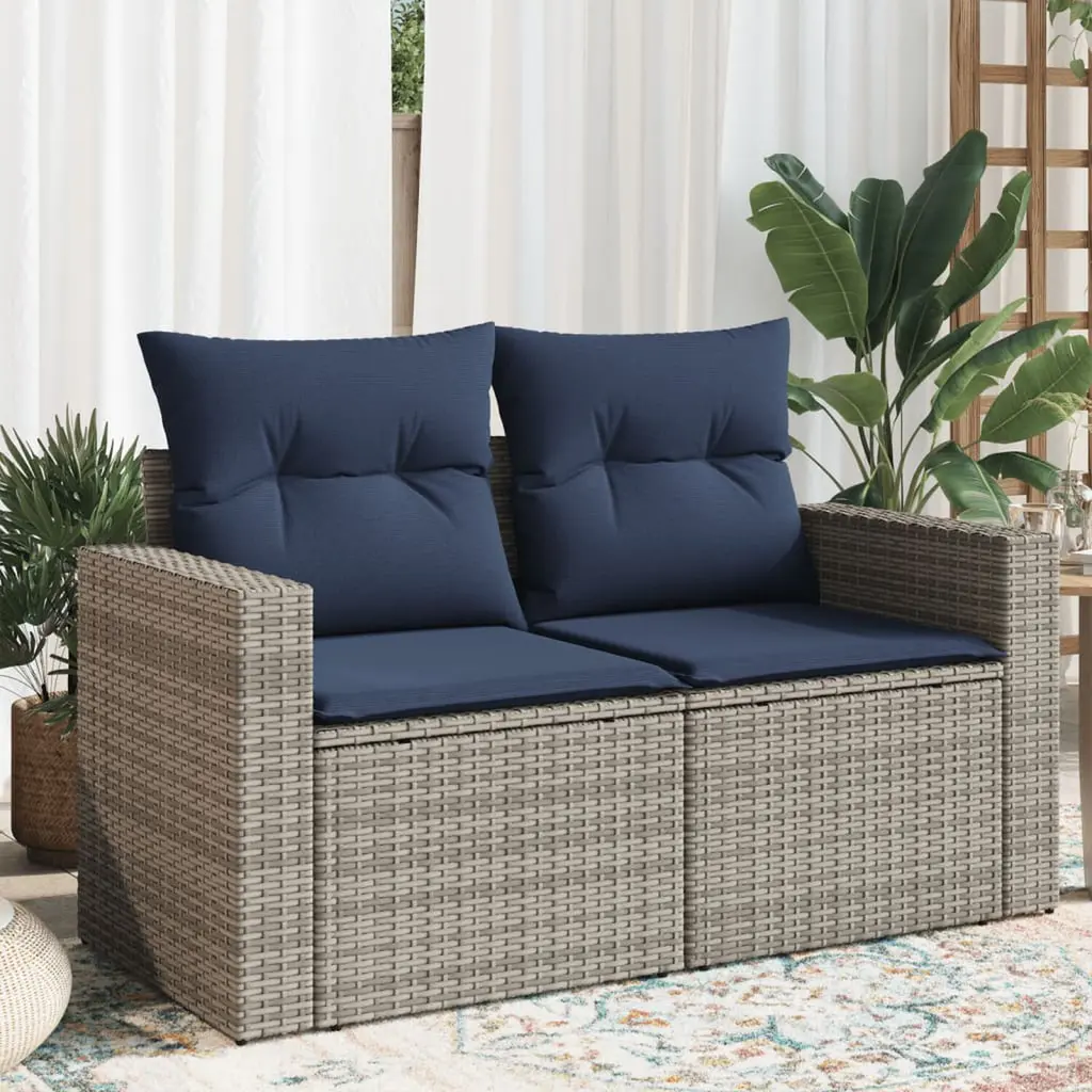 Vidaxl Patio Sofa With Cushions 2-Seater Gray Poly Rattan