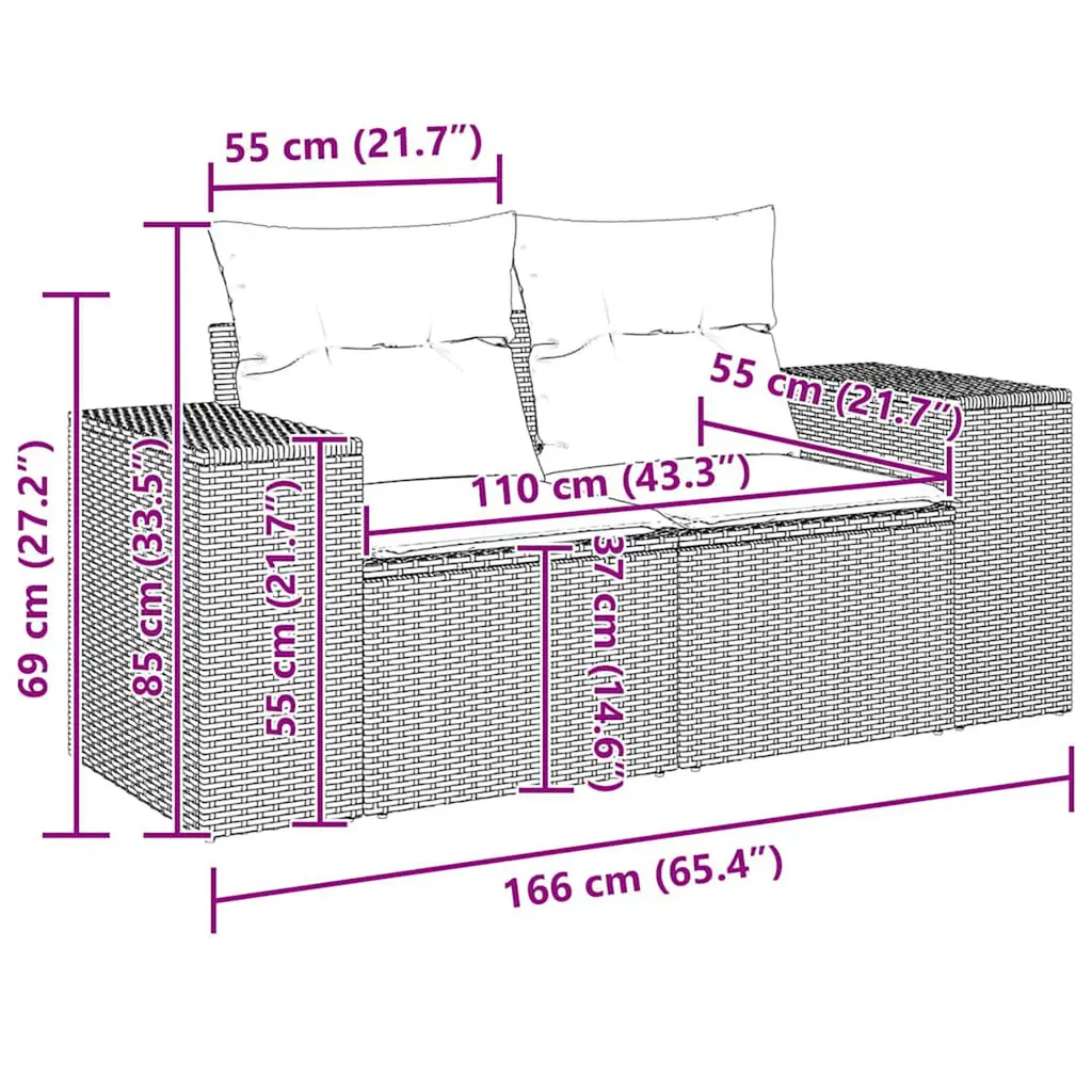 Relax and enjoy the outdoors in this comfortable 2-seater patio sofa!Durable material: PE rattan, also known as poly rattan, is a strong, low-maintenance synthetic material that looks like natural rattan. It's lightweight, easy to clean, and commonly used for outdoor furniture due to its durability and weather-proof properties.Comfortable seat experience: This outdoor furniture, complete with thickly padded cushions, offers a comfortable seating experience. The wide armrests also provide a convenient spot to keep your cellphone, cups, or other small items within easy reach.Removable and washable cover: These seat cushions feature removable covers for easy washing and maintenance.Modular design: This outdoor furniture set has a modular design, making it completely flexible and easy to move around, so you can create a customized outdoor furniture arrangement.Good to know:To make sure your outdoor furniture stays beautiful, we recommend protecting it with a waterproof cover.