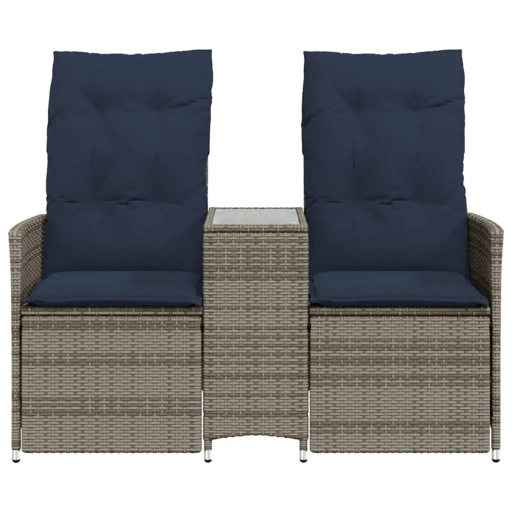Vidaxl Reclining Patio Sofa 2-Seater With Table Gray Poly Rattan