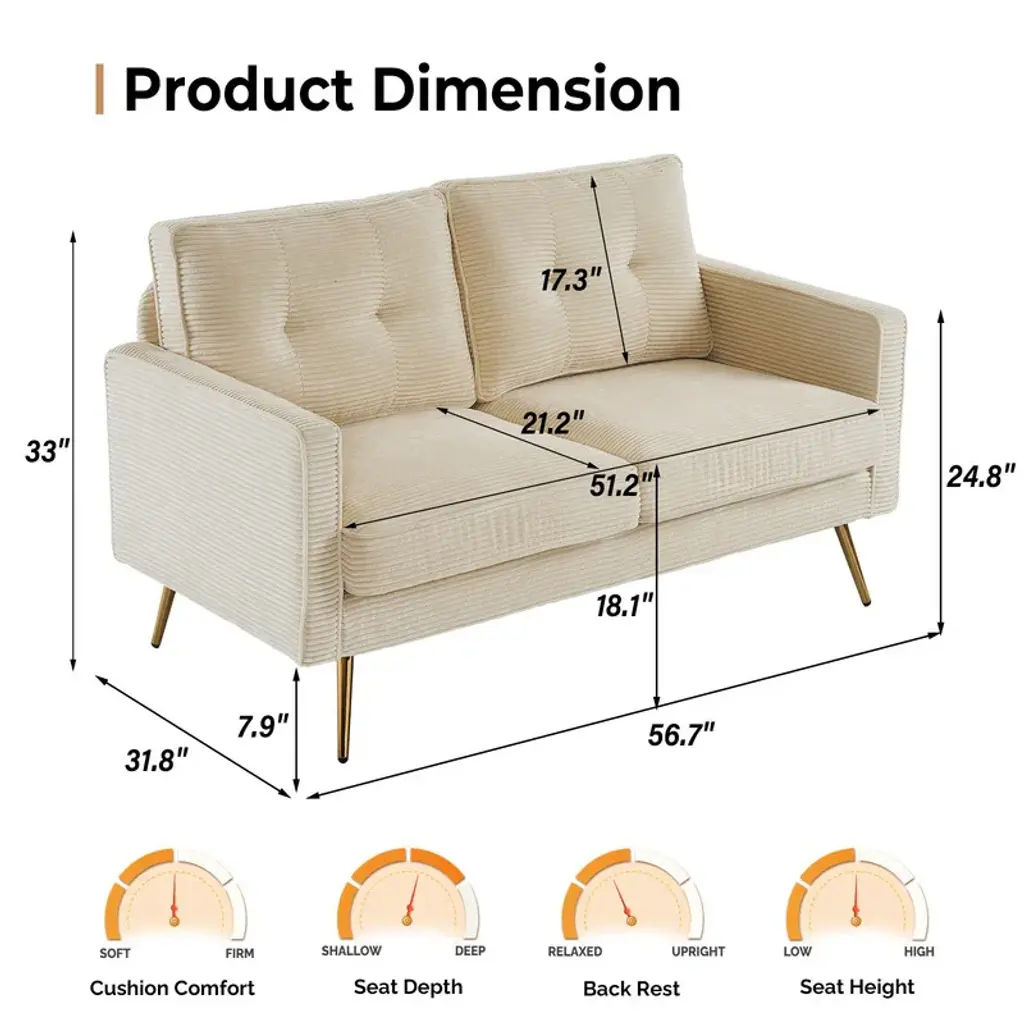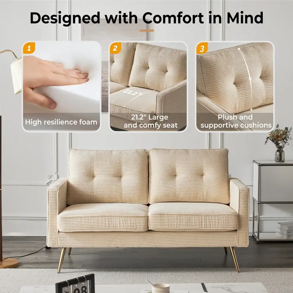 Vingli 56" Modern Loveseat - Beige Corduroy