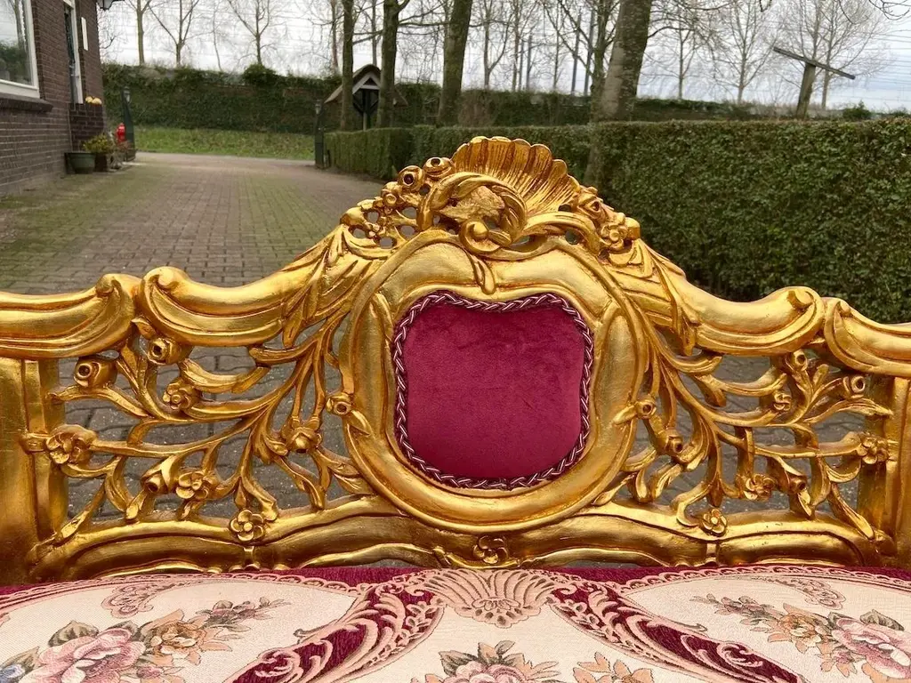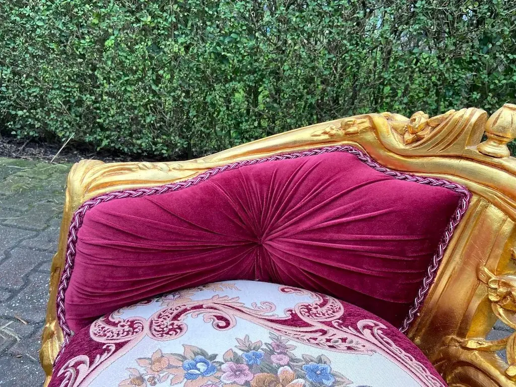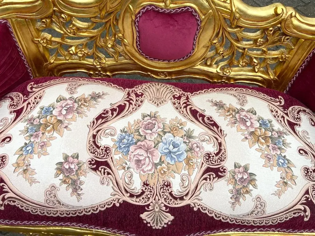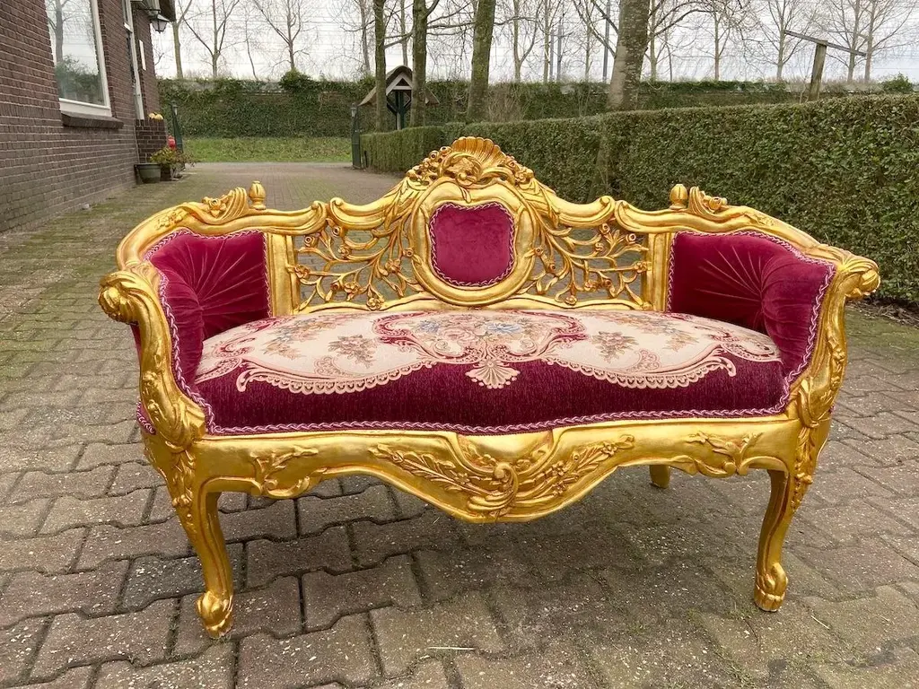 Exquisite Vintage French Louis XVI Settee – Hand-Carved Gilded Beech Frame & Sumptuous Red Velvet Upholstery Product Overview: Indulge in timeless elegance with this breathtaking French Louis XVI-style settee, a refined statement piece that captures the opulence and sophistication of 18th-century French design. Crafted with a hand-carved solid beech frame, this vintage masterpiece is meticulously re-finished in rich antique gold gilding, enhancing its intricate floral motifs and regal curves. Upholstered in deep red velvet damask, this settee exudes warmth and grandeur, making it an ideal focal point in a luxurious living space, bedroom, or formal sitting area. Whether you're a passionate antique collector, an interior designer, or simply someone with a love for classic European aesthetics, this authentic Louis XVI-style settee will elevate your space with its undeniable charm and history. Key Features: ✔ Authentic Vintage Craftsmanship: A true Louis XVI-style treasure, hand-carved by skilled artisans with detailed floral and acanthus leaf motifs. ✔ Plush Red Velvet Damask Upholstery: Recently restored with high-quality velvet damask fabric, offering both softness and durability. ✔ Gold-Gilded Beechwood Frame: The solid beech frame is adorned with an exquisite antique gold patina, adding a regal touch. ✔ Timeless European Elegance: Inspired by the refined aesthetic of 18th-century France, this settee seamlessly blends with both classic and modern interiors. ✔ Aged Beauty & Character: As a genuine vintage piece, it bears subtle signs of time, adding to its historical charm and authenticity. Approximate Dimensions: Width: 120 cm | 47 inches Depth: 50 cm | 20 inches Height: 77 cm | 30 inches Seat Height: 46 cm | 18 inches Shipping & Delivery: ✔ Professionally packed in a custom wooden crate for secure transport. ✔ Fully Insured & Tracked: We ensure your settee arrives safely with full insurance and tracking. ✔ Shipping Method: Secure and efficient sea freight. Why This French Louis XVI Settee? ✔ Handcrafted vintage artistry with luxurious materials ✔ Gorgeous gold-gilded detailing & classic Louis XVI design ✔ Perfect for collectors, interior designers & antique enthusiasts ✔ A rare, timeless statement piece for sophisticated interiors Make This Exquisite French Settee Yours Today! Transform your home with the elegance of vintage French luxury. The deep red velvet upholstery and gilded beech frame make this settee a showstopping centerpiece in any space. Order Now & Experience Classic European Elegance!