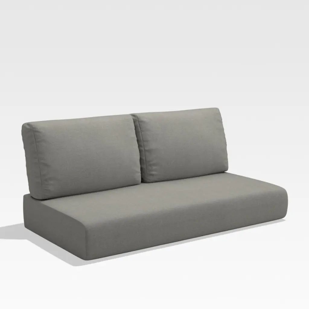 Add plush comfort and modern style to the left- or right-hand Walker loveseat with boxy seat and back cushions in graphite grey. Covered in weather-resistant Sunbrella fabric, the cushions are neatly tailored with zippers that help to ventilate and facilitate drying. The Walker outdoor sectional loveseat cushions are exclusive to Crate & Barrel.Additional Sunbrella® cushion colors available.