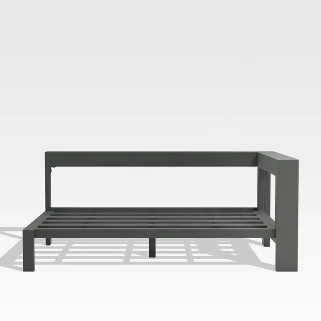 Sink back into the deep-seated, softly cushioned comfort of our Walker sectional collection. Made of aluminum finished in dark grey, the right-arm loveseat features recessed detailing, architectural lines and a wide arm that's perfect for parking an icy beverage. For an extra layer of comfort add on boxy cushions covered in weather-resistant Sunbrella fabric (sold separately). The Walker right-arm loveseat is a Crate & Barrel exclusive.