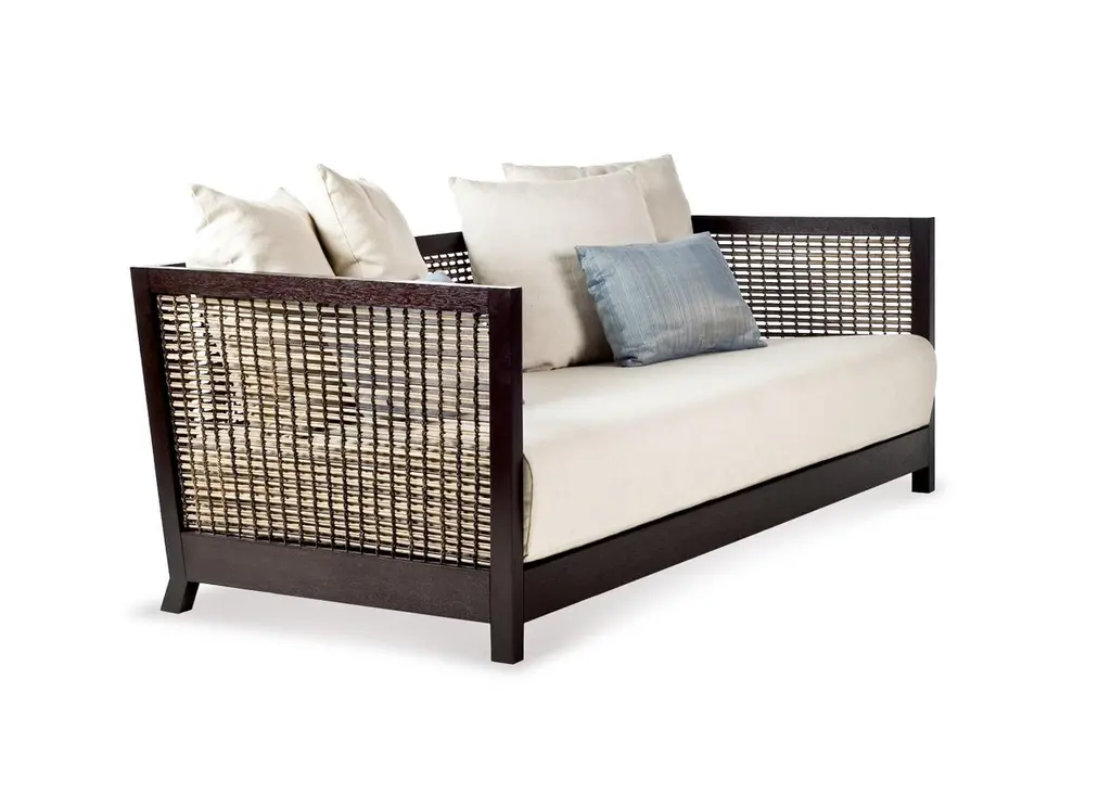 Walnut Lowback Suzy Wong loveseat by Kenneth Cobonpue.Materials: Lampakanai, rattan, walnut. Also available in maple.Dimensions: 83 cm x 162 cm x H 64 cmWoven panels create a feeling of intimacy as you and your guests indulge in conversation or tea. The Suzy Wong collection is made of natural materials: abaca, rattan and maple or lampakanai, rattan and walnut.Designer's BiographyKenneth Cobonpue is a multi-awarded furniture designer and manufacturer from Cebu, Philippines. His passage to design began in 1987, studying Industrial Design at the Pratt Institute in New York. While completing his studies, he apprenticed for a leather and wood workshop near Florence, Italy. He went on to study Furniture Marketing and Production at the Export-Akademie Baden-Württemberg in Reutlingen, Germany, under a private and state scholarship program, and subsequently worked in Bielefeld and Munich.Kenneth returned home to Cebu in 1996 to manage Interior Crafts of the Islands, Inc., a furniture design and manufacturing company founded by his mother Betty Cobonpue in 1972. Discovering that modern design could have a new face using natural fibers and materials, Kenneth created pieces of functional art, offering an alternative to the Western definition of modern design. Today, the Kennethcobonpue brand has become known globally for its unique designs and extensive roster of clientele, including Hollywood celebrities and members of royalty.With his masterful way of integrating nature, traditional craft and innovative technologies, designer and creative director Kenneth Cobonpue has earned international awards and recognition for his creative, organic, and expressive pieces. Working closely with some of the world’s leading designers, from household names to emerging talents, Kenneth has been pushing the envelope for design in the Philippines and sharing his vision to a global audience. Awards to his credit include five Japan Good Design Awards, the grand prize at Singapore International Design Competition, the Design for Asia Award of Hong Kong, the American Society of Interior Design Top Pick selection and the French Coup de Coeur award. Several of his designs were selected for several editions of the International Design Yearbook published in London and New York. Phaidon’s book entitled “& FORK” underscores Kenneth’s position as a leader of a new movement incorporating new technologies with crafts. In 2007, TIME magazine called him “rattan’s first virtuoso”. Kenneth was named the Designer of the Year in the first edition of Maison et Objet Asia held in March 2014 in Singapore.Kenneth reveals new work each year in the design shows from Milan to New York, and he speaks regularly about Southeast Asian design all over the world. He has also appeared in European television and in countless international magazines and newspapers around the world. Various Cobonpue designs have also appeared in full-length feature films and television, such as Oceans 13 and CSI.
