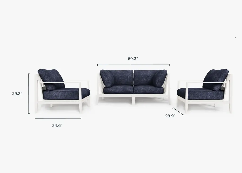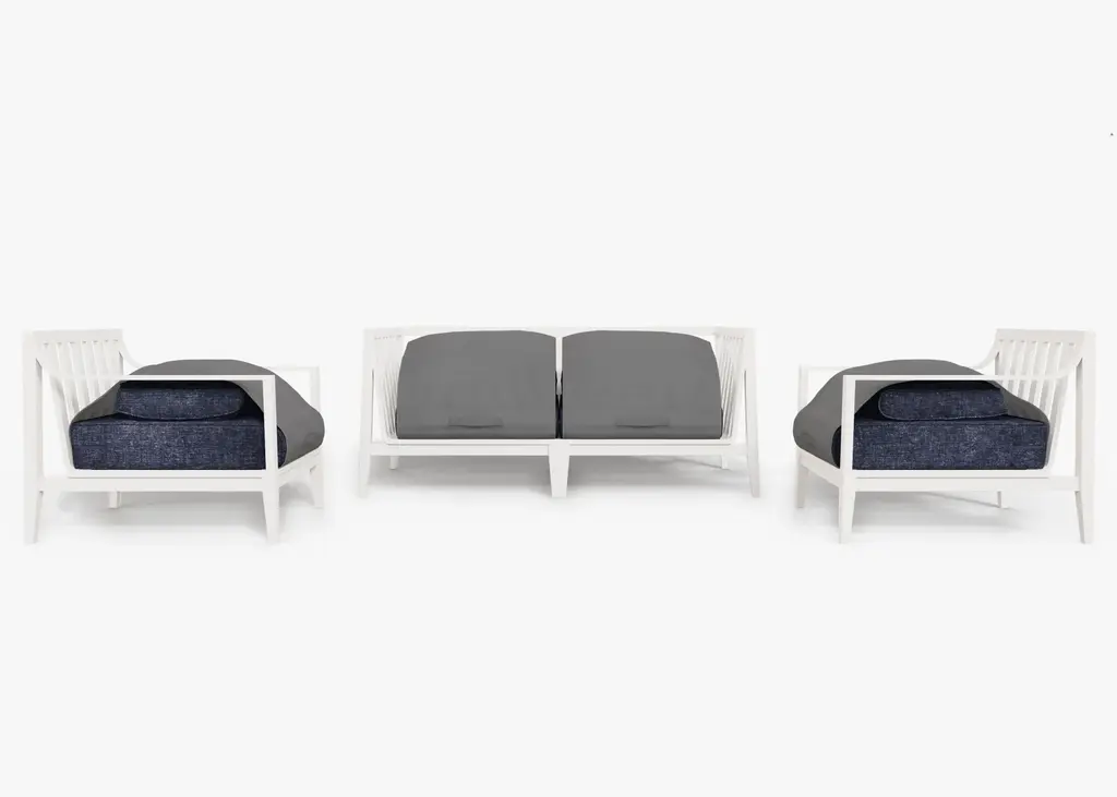 White Aluminum Outdoor Loveseat With Armchairs - 4 Seat