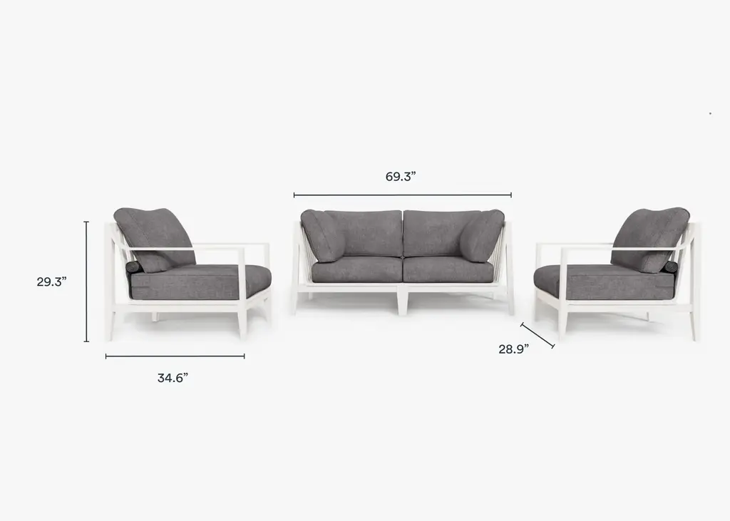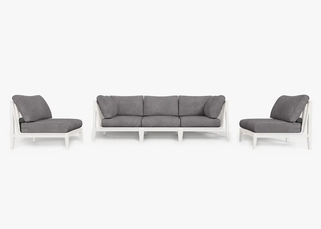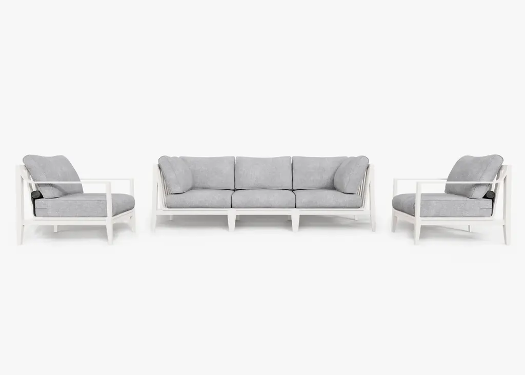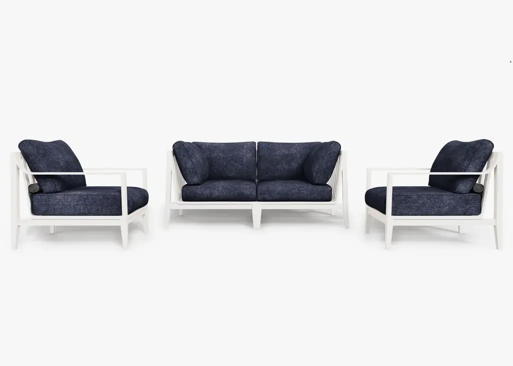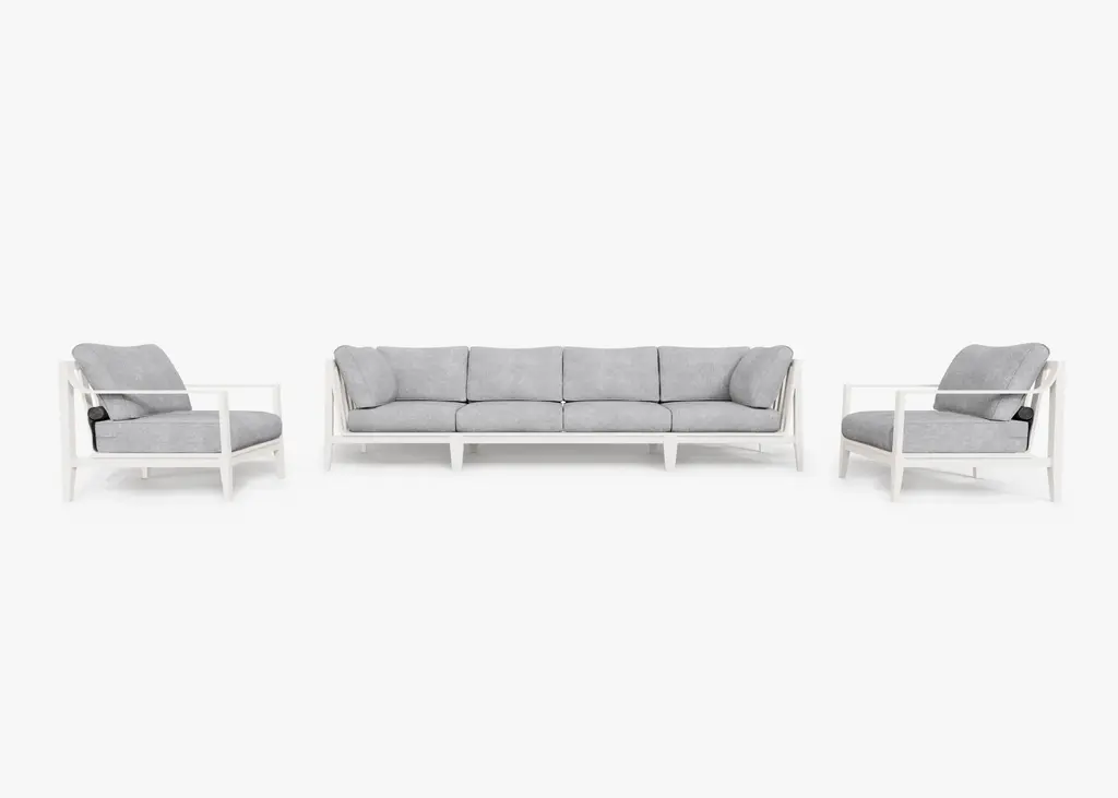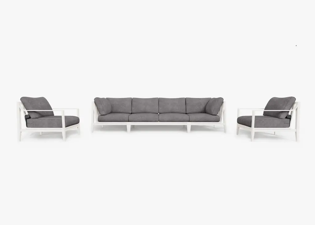 White Aluminum Outdoor Loveseat With Armchairs - 4 Seat