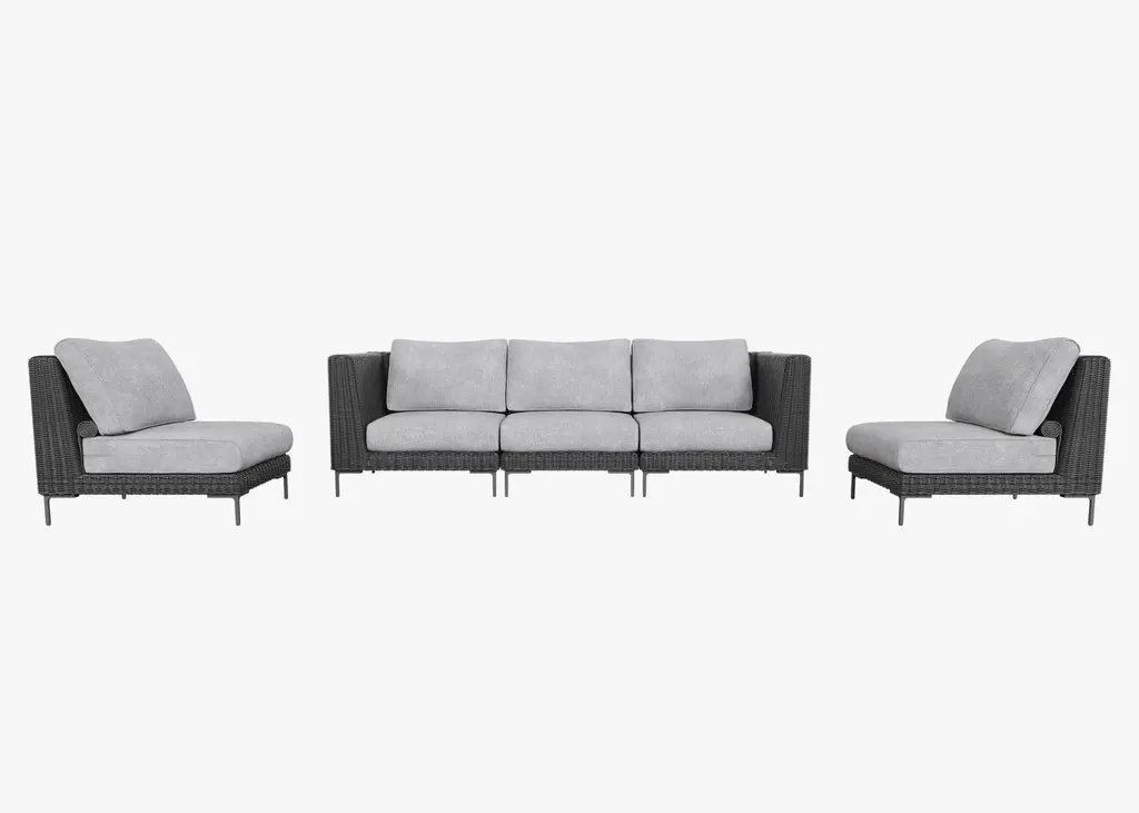 Enjoy indoor comfort outside. Sleek, lightweight, and durably designed with weatherproof aluminum, Outer’s modular furniture invites you to relax on luxuriously comfortable memory foam cushions. The built-in, easy to use OuterShell® cover protects the cushions when not in use, and features Velcro to secure it in place and a handle for convenient transport and storage. Includes 2 corner chairs and 2 armchairs that reconfigure easily. No assembly required.