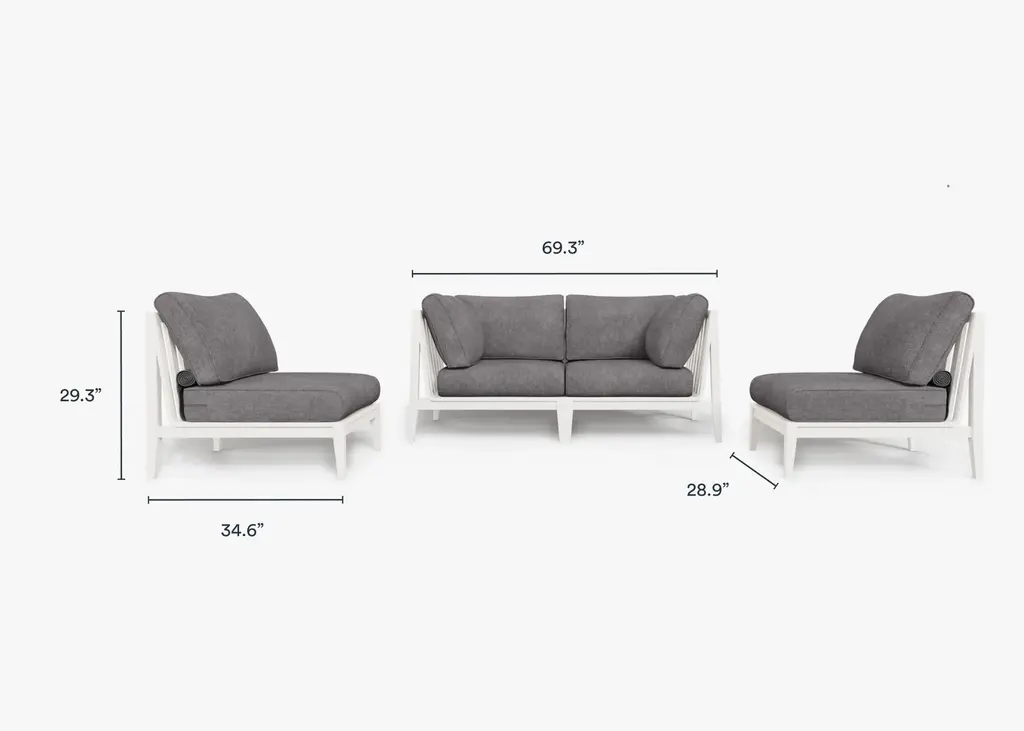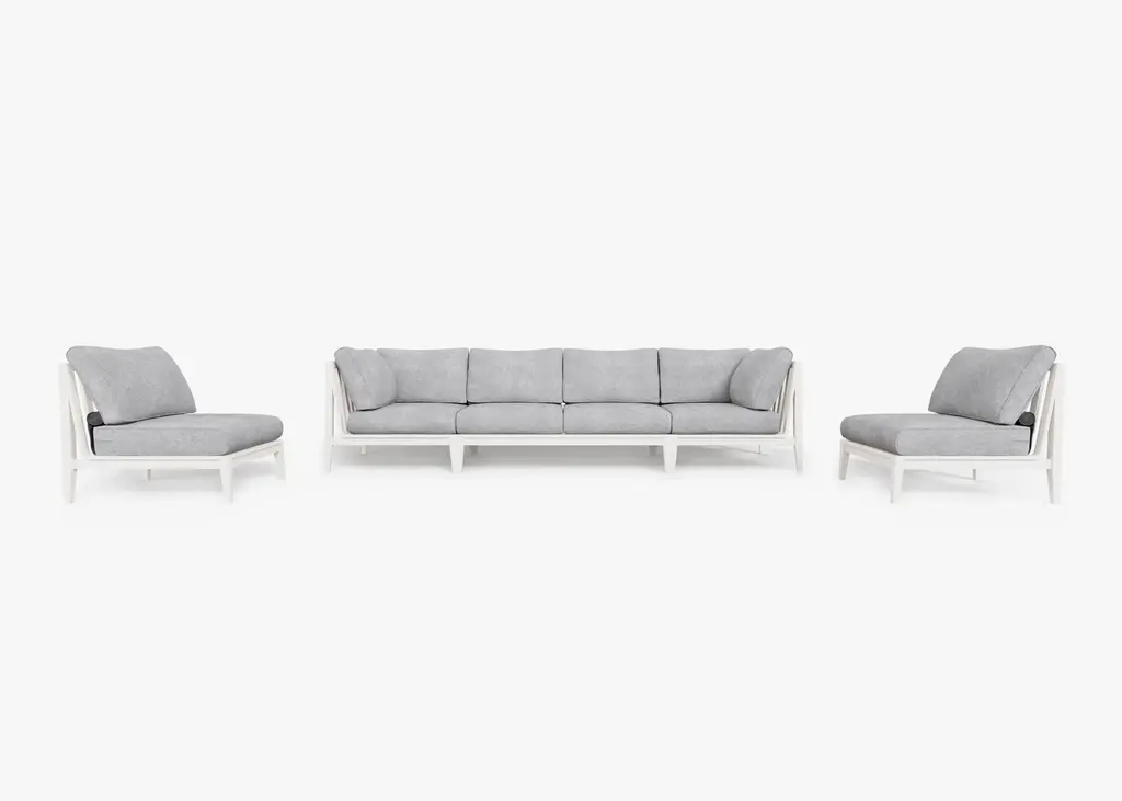 White Aluminum Outdoor Loveseat With Armless Chairs - 4 Seat