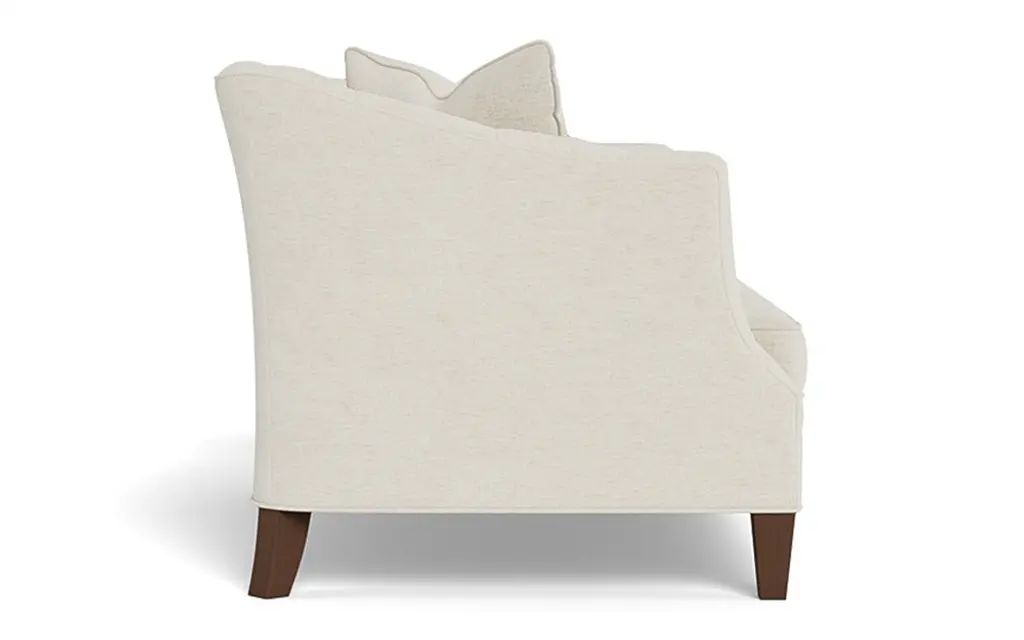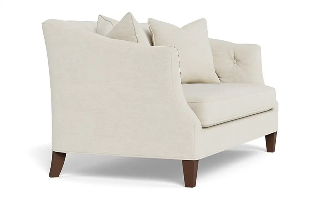 Our 61" Willa settee features a button-tufted back, tapered wood legs, and a curved frame that lends a touch of sweetness to the silhouette. The seat cushion provides a firmer sit that remains both supportive and comfortable. Willa is the perfect blend of elevated and inviting—a welcome addition to sophisticated yet cozy living spaces.