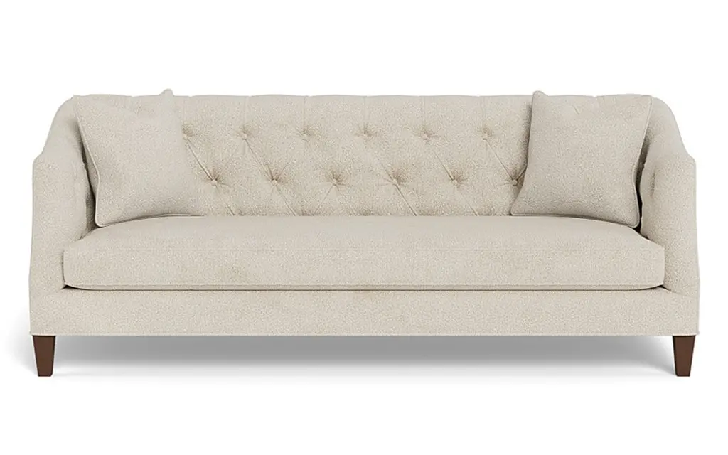 Our 61" Willa settee features a button-tufted back, tapered wood legs, and a curved frame that lends a touch of sweetness to the silhouette. The seat cushion provides a firmer sit that remains both supportive and comfortable. Willa is the perfect blend of elevated and inviting—a welcome addition to sophisticated yet cozy living spaces.