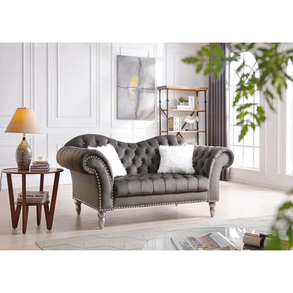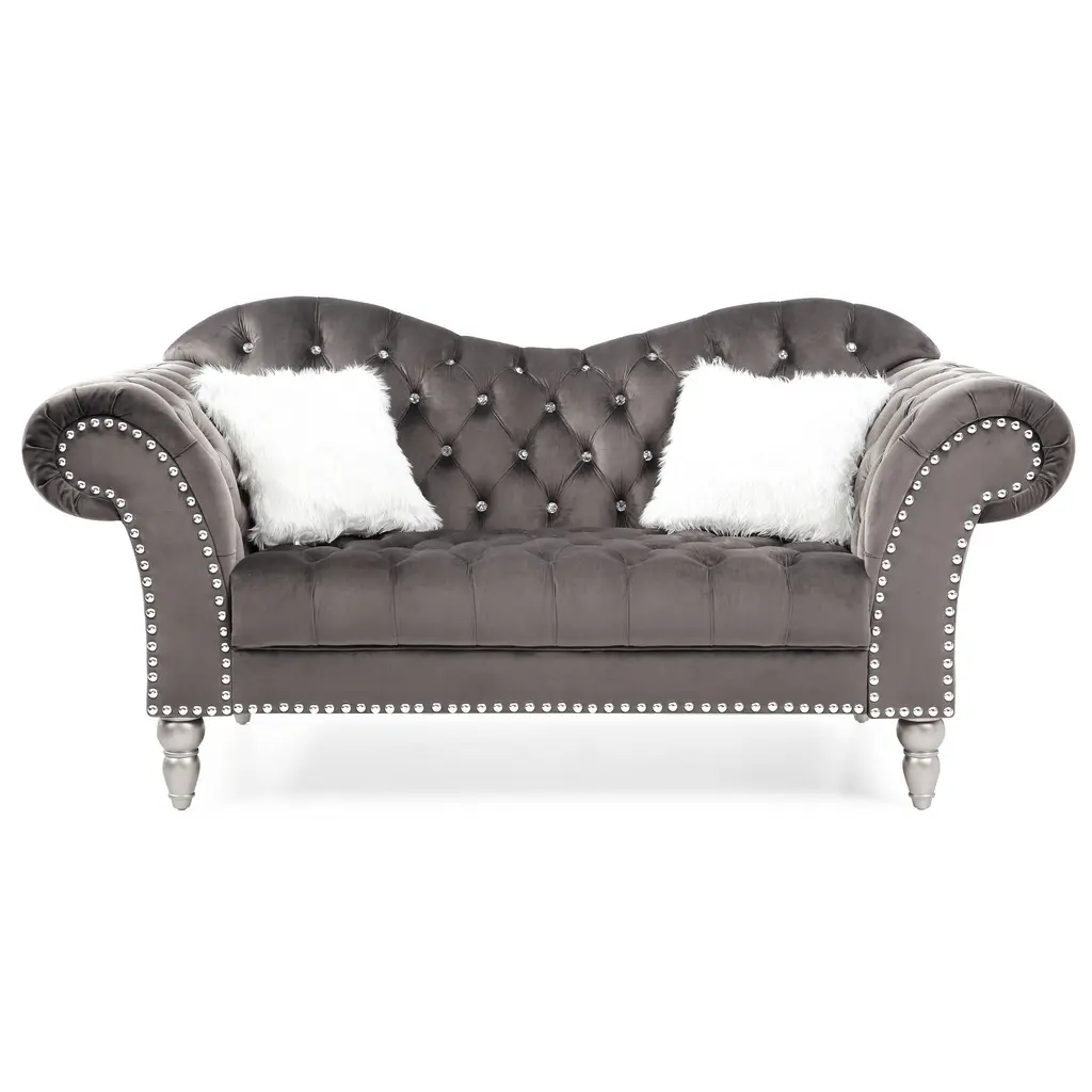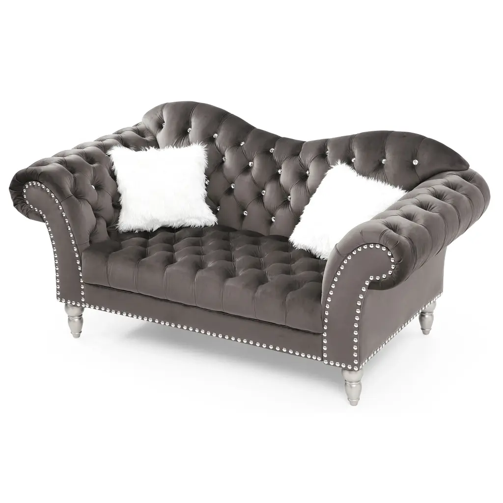 Wilshire Velvet Tufted Loveseat - Dark Grey
