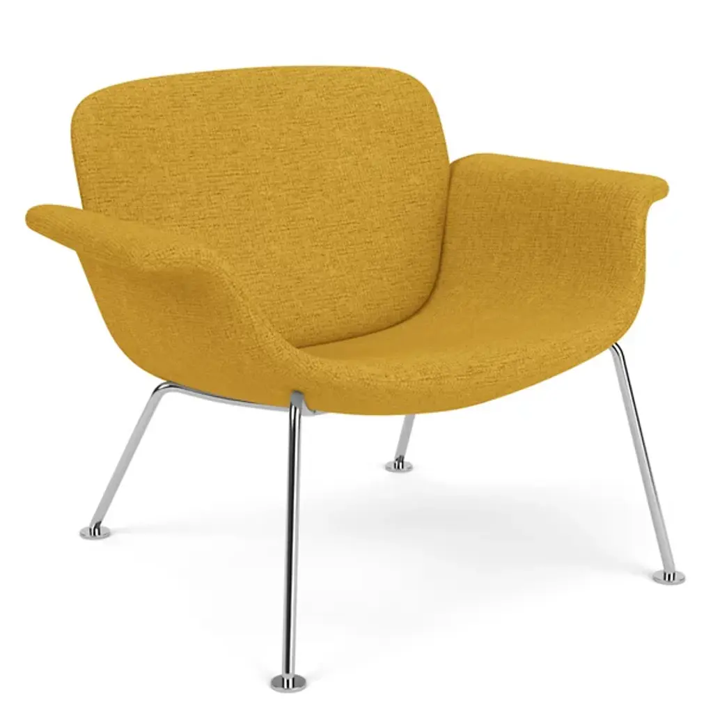 A Womb Chair fit for two. Designed in 1948, the Womb Settee was brought back into production in 2015. The double-wide design offers a comforting oasis of calm for the home or office.The Womb Settee was developed in anticipation of Eero Saarinen’s architectural commission for the General Motors Technical Center in Warren, Michigan—a 25-building complex requiring furniture for 5,000 stressed employees. Saarinen responded with a slim, sculptural, inviting settee, completely unlike the clumsy, oversized models popular at the time. “These dreadnaughts have disappeared from modern interiors partly because they were designed for an era that tried to impress by sheer mass,” wrote Saarinen. “Now, more than ever, we need to relax.”