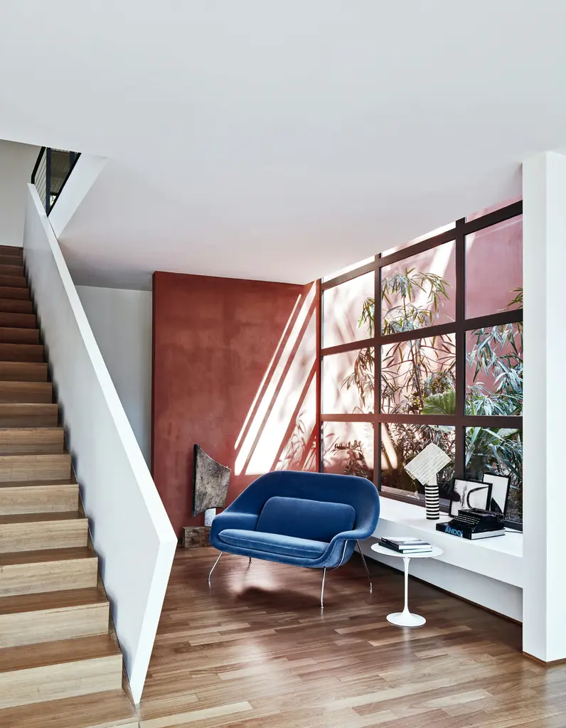 A Womb Chair fit for two. Designed in 1948, the Womb Settee was brought back into production in 2015. The double-wide design offers a comforting oasis of calm for the home or office.The Womb Settee was developed in anticipation of Eero Saarinen’s architectural commission for the General Motors Technical Center in Warren, Michigan—a 25-building complex requiring furniture for 5,000 stressed employees. Saarinen responded with a slim, sculptural, inviting settee, completely unlike the clumsy, oversized models popular at the time. “These dreadnaughts have disappeared from modern interiors partly because they were designed for an era that tried to impress by sheer mass,” wrote Saarinen. “Now, more than ever, we need to relax.”