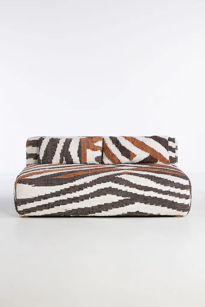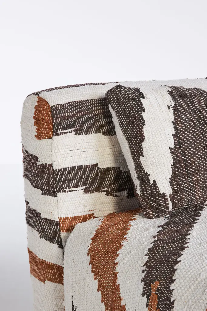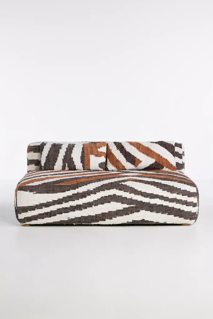Build a comfy respite to accommodate your space - and family - with this modular series that features durable, hand-woven cotton rug upholstery in an eye-catching pattern.Our completely customizable modular series offers an effortless gateway into contemporary decor. Each modular component is sold separately, allowing you to build the sofa shape or seating arrangement that fits your space and your lifestyle.For ordering assistance and more, please contact us. For aesthetic advice and tips to help decorate your space, enjoy our complimentary home styling services.Ready to elevate your living room experience? Read our comfort guide so you can easily find the perfect sofa for your home, sweet home.