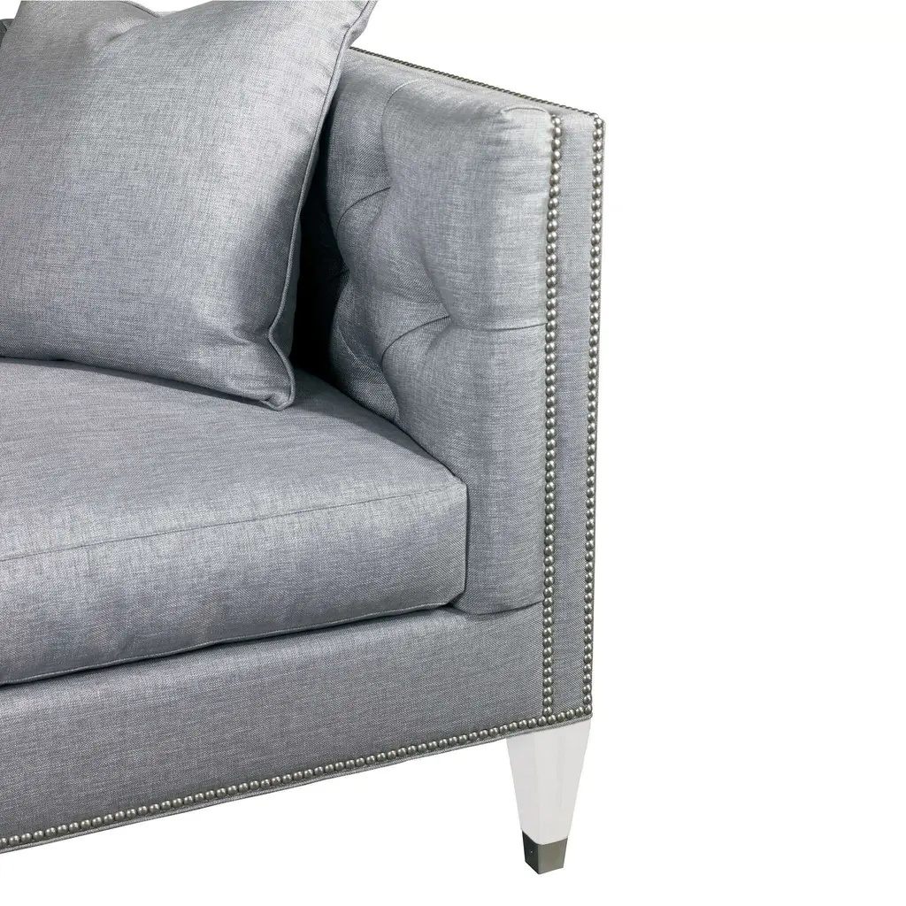 The Wright collection also includes a sofa (sold separately). Ships In 8-10 Weeks Tufted back and inside arms One bench cushion As Shown Fabric: Wind Silver As Shown Finish: Sugar If you choose to purchase COM, once you have placed your order a customer service rep will contact you regarding where to send your fabric. Please note that current lead time is 17-19 weeks once your fabric arrives at the factory, and if unused fabric is under 1.5 yards, it cannot be sent back to you.This product can be special ordered in additional fabrics, leathers, finishes, and cushion fillings. Click here to email us for for additional information about special ordering.This image is for illustrative purposes only. The colors shown are accurate within the constraints of lighting, photography, and the color accuracy of your screen.