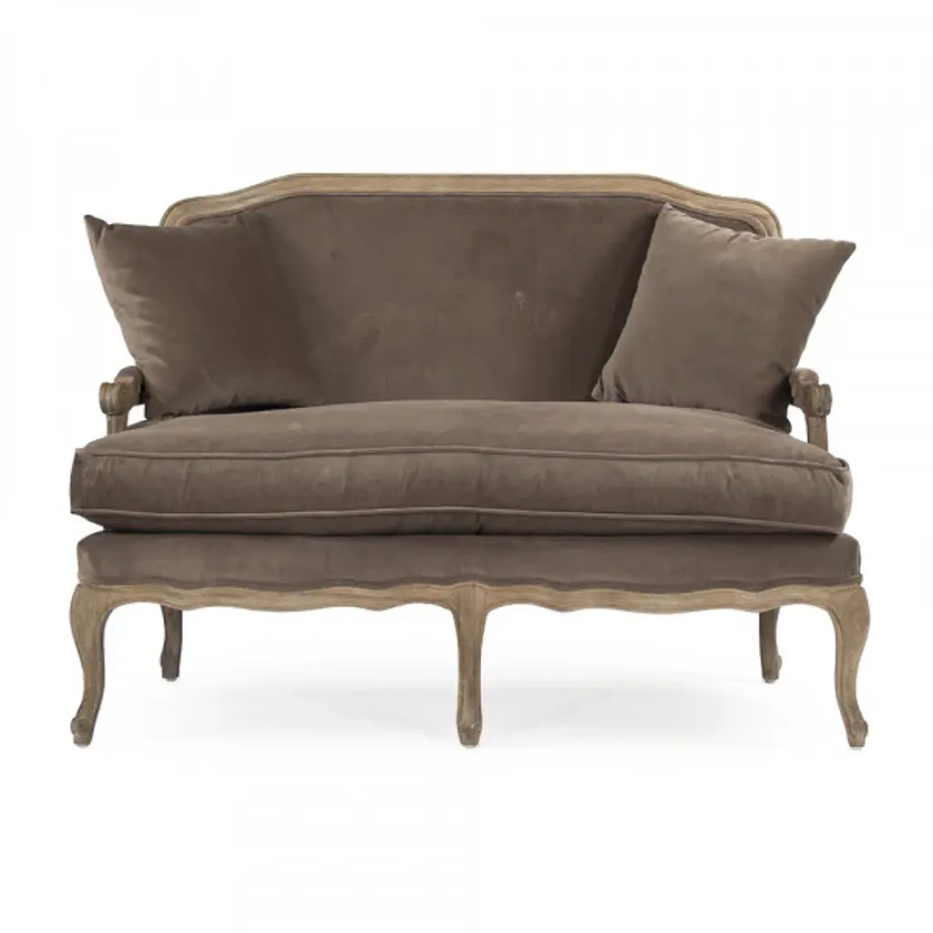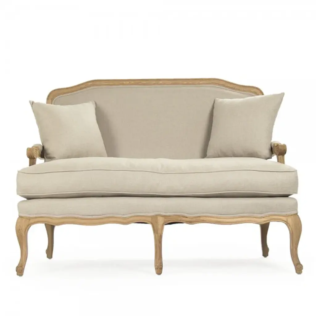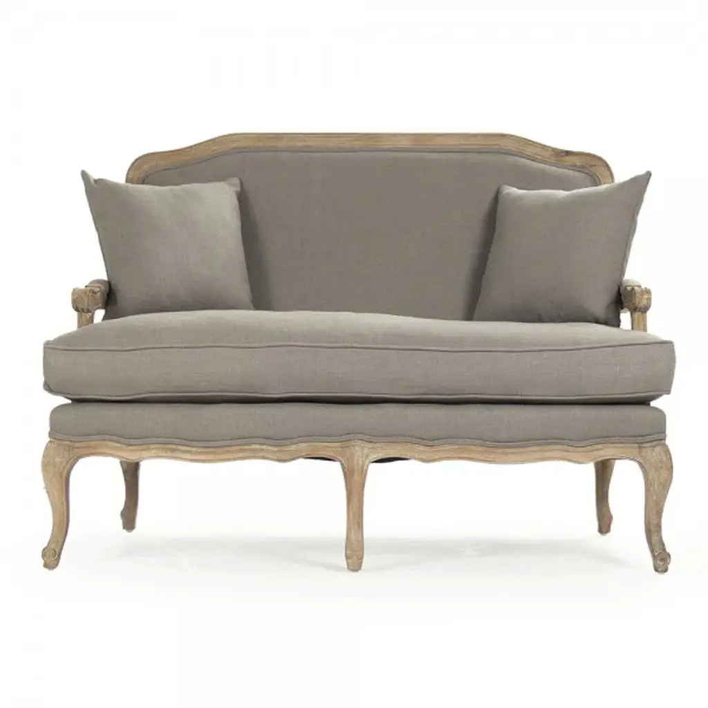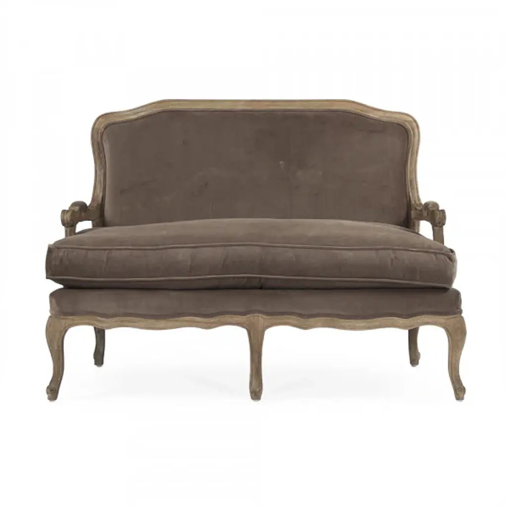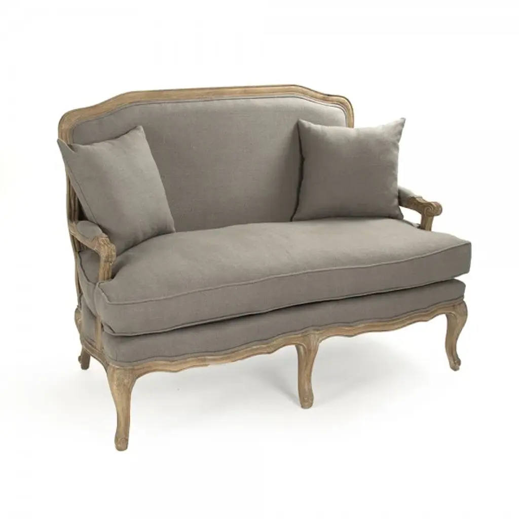 In the French Provincial style, this beautiful Bastille sofa by Zentique is upholstered in your choice of natural linen, grey linen or brown velvet on an oak frame Overall Dimensions(in): W71.75 x H37.5 x D28 Weight (lbs): 93 Manufacturer: Zentique Free shipping in the U.S.