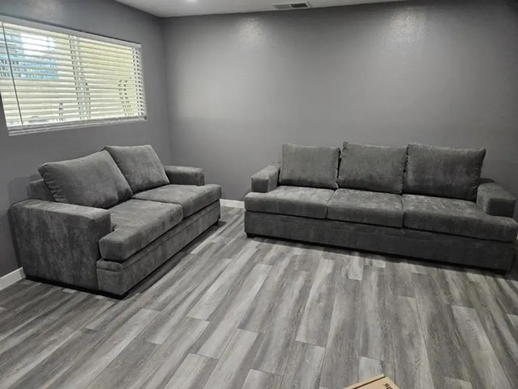 The Zoeller Charcoal Grey Fabric 2 Piece Sofa & Loveseat Set is the perfect addition to your living room. Designed with casual style, this set features a sofa and loveseat made from durable 100% polyester fabric. The dark grey color adds a neutral touch to any space, making it versatile for various decor themes.
